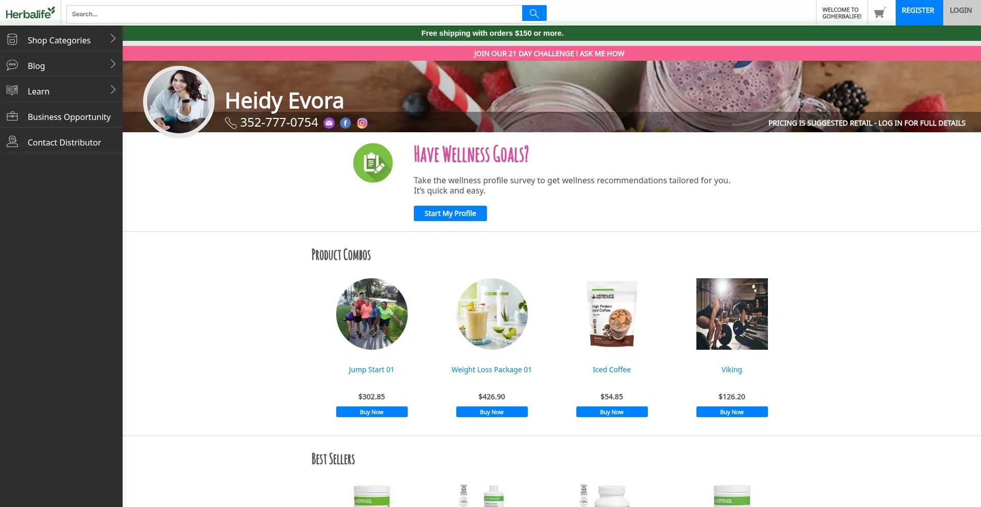 该网站实现数据收集表单,请求个人信息,包括姓名、电子邮件地址、电话号码或其他敏感详细信息。用户应验证 heidyevora.goherbalife.com 的合法性并在提交个人数据前查看隐私政策。