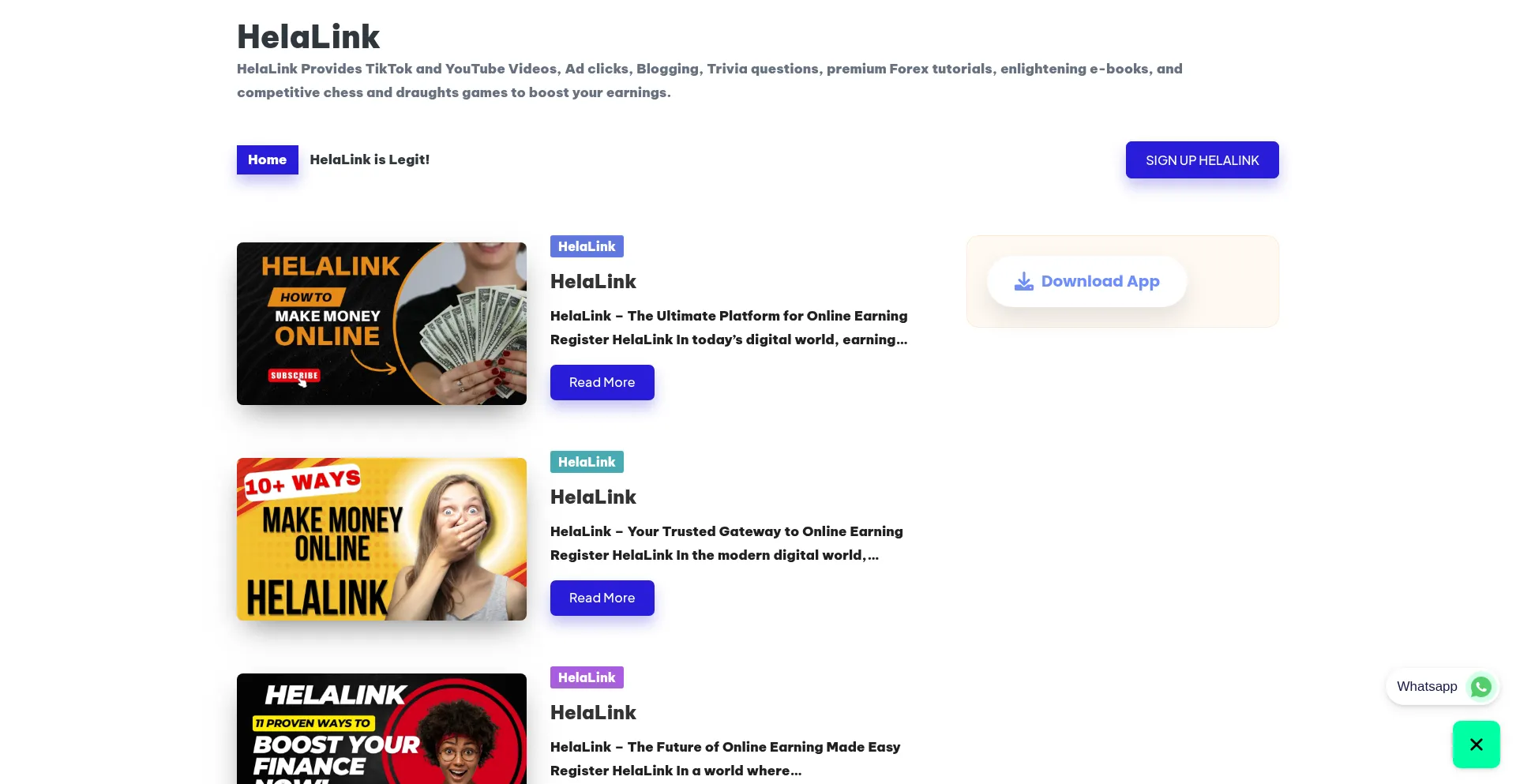 HelaLink Provides TikTok and YouTube Videos, Ad clicks, Blogging, Trivia questions, premium Forex tutorials, enlightening e-books, and competitive chess and draughts games to bo...