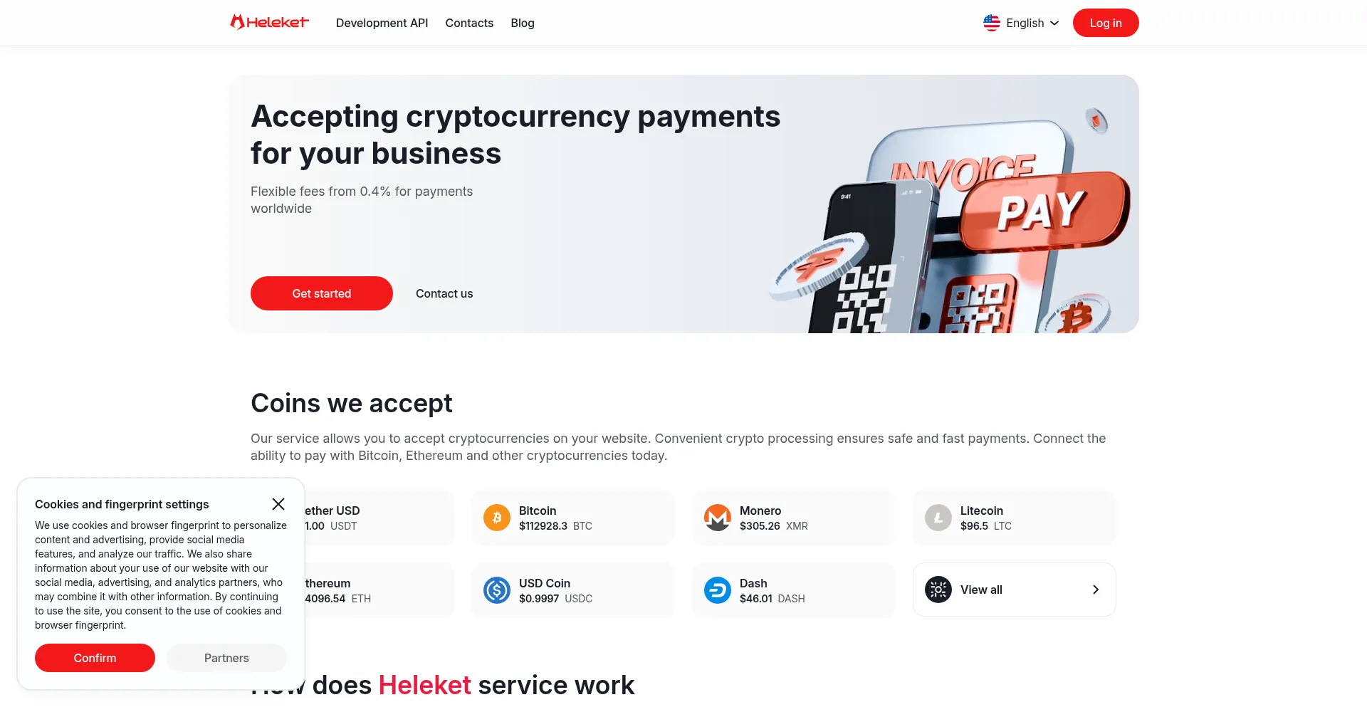 该网站实现符合GDPR或CCPA等隐私法规的cookie同意机制。这表明 heleket.com 遵守数据保护标准并为用户提供对个人数据收集实践的控制。