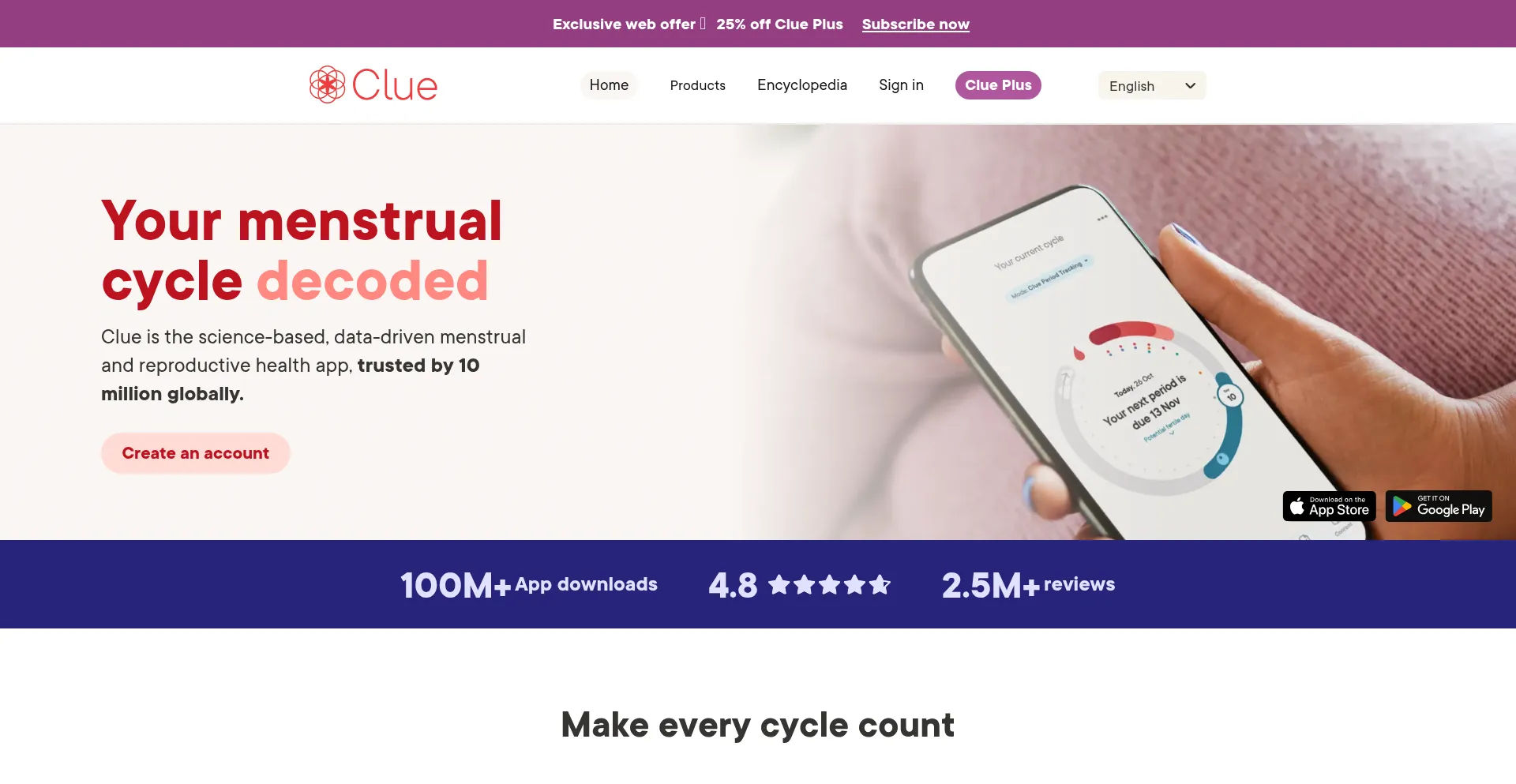 Clue Period & Ovulation Tracker with Ovulation Calendar for iOS, Android, and watchOS