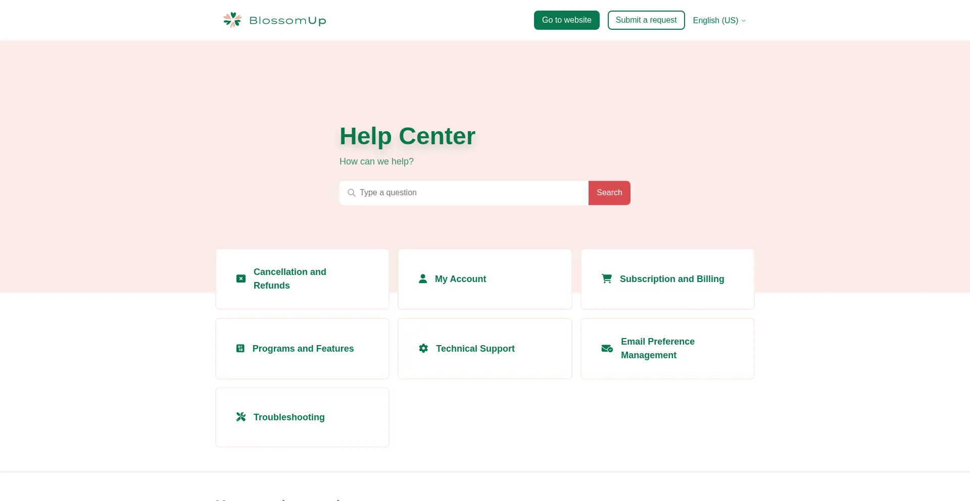 网站 help.blossomup.co 使用免费电子商务平台解决方案,这可能表明成本意识运营,但也可能暗示与企业级解决方案相比在安全功能、客户支持或高级功能方面的限制。