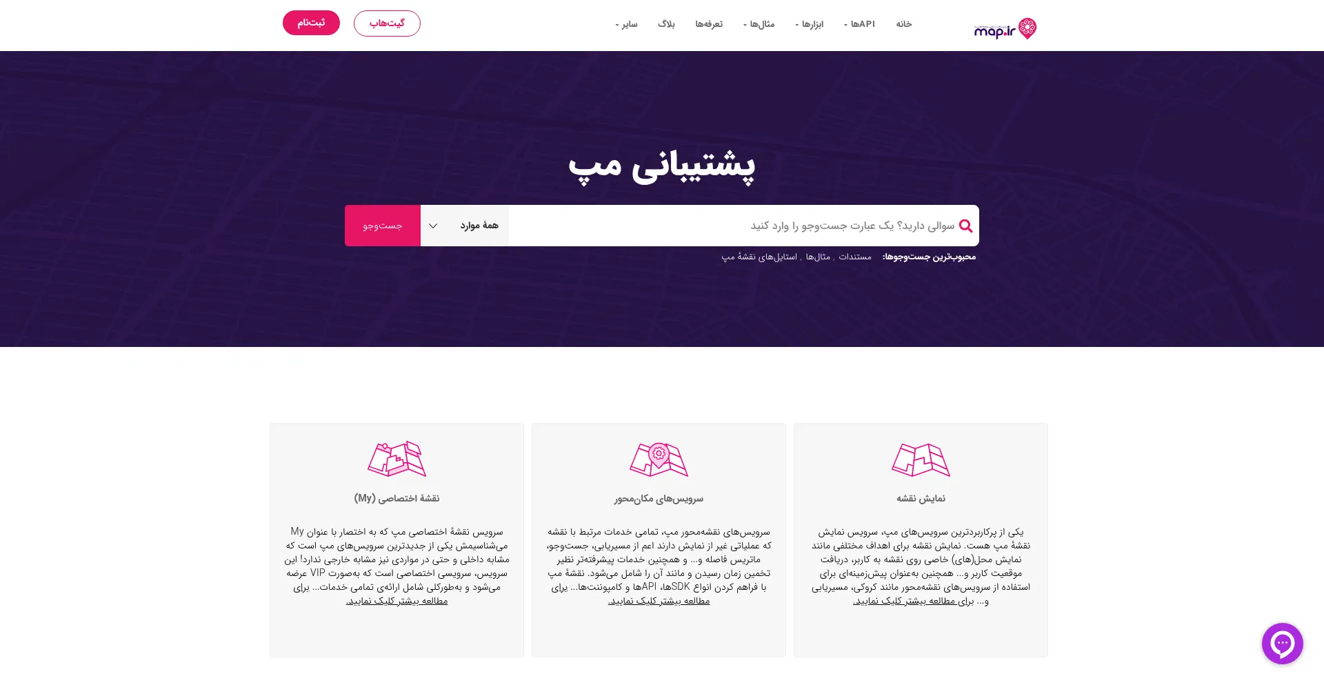 سایت پشتیبانی نقشهٔ مپ | شامل مستندات کامل تمامی سرویسهای نقشهٔ مپ، پایگاه دانش و آموزشهای ...