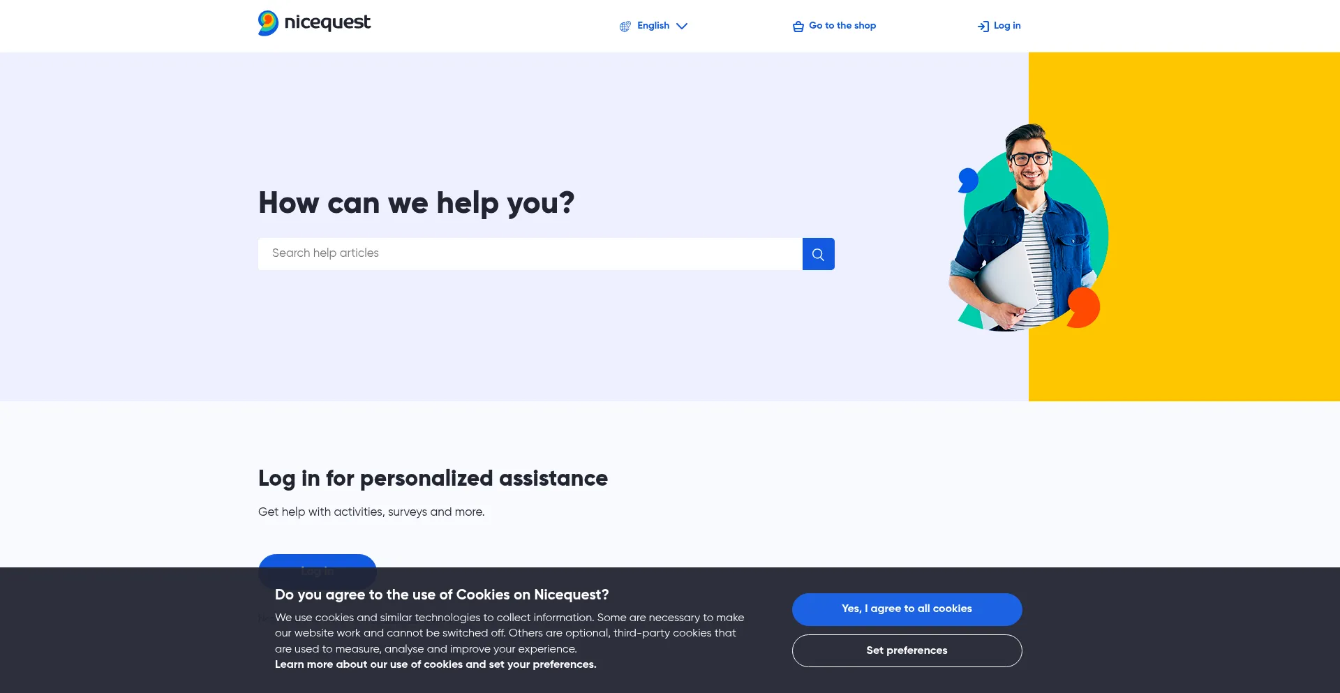 该网站实现符合GDPR或CCPA等隐私法规的cookie同意机制。这表明 help.nicequest.com 遵守数据保护标准并为用户提供对个人数据收集实践的控制。