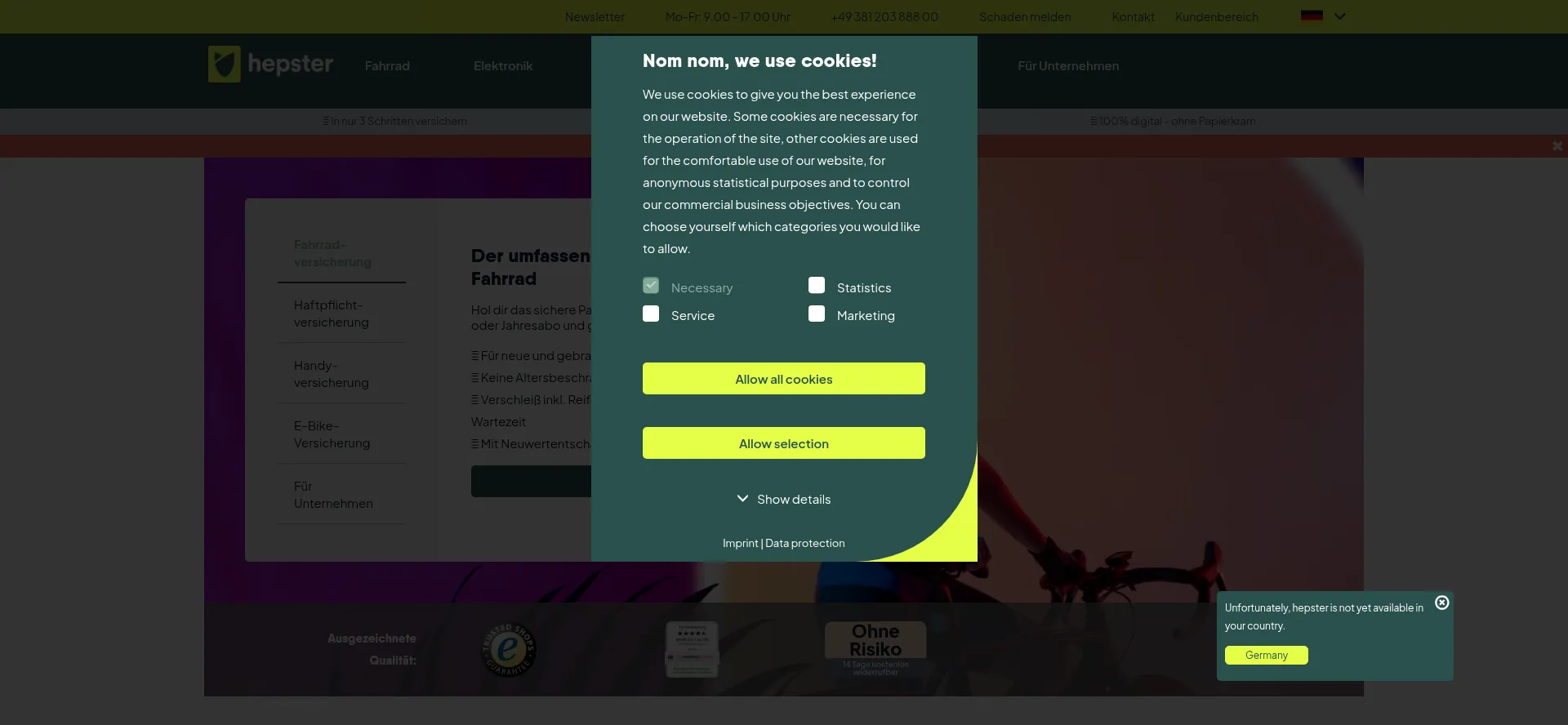 Jetzt günstige Versicherungen online abschließen mit hepster: ✓ Fahrrad ✓ E-Bike ✓ Handy ✓ Kamera ✓ Tiere ✓ Laptop ✓ Reisen ✓ Unfälle ✓ Schutzbrief