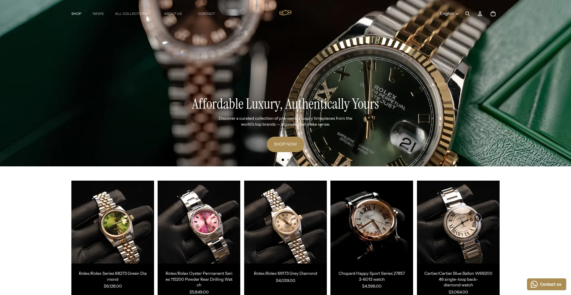 该网站展示奢侈品牌名称或高价值产品。这可能表明潜在的假冒商品或未经授权的品牌使用,特别是如果该网站缺乏官方经销商授权。在评估真实性时请格外谨慎。