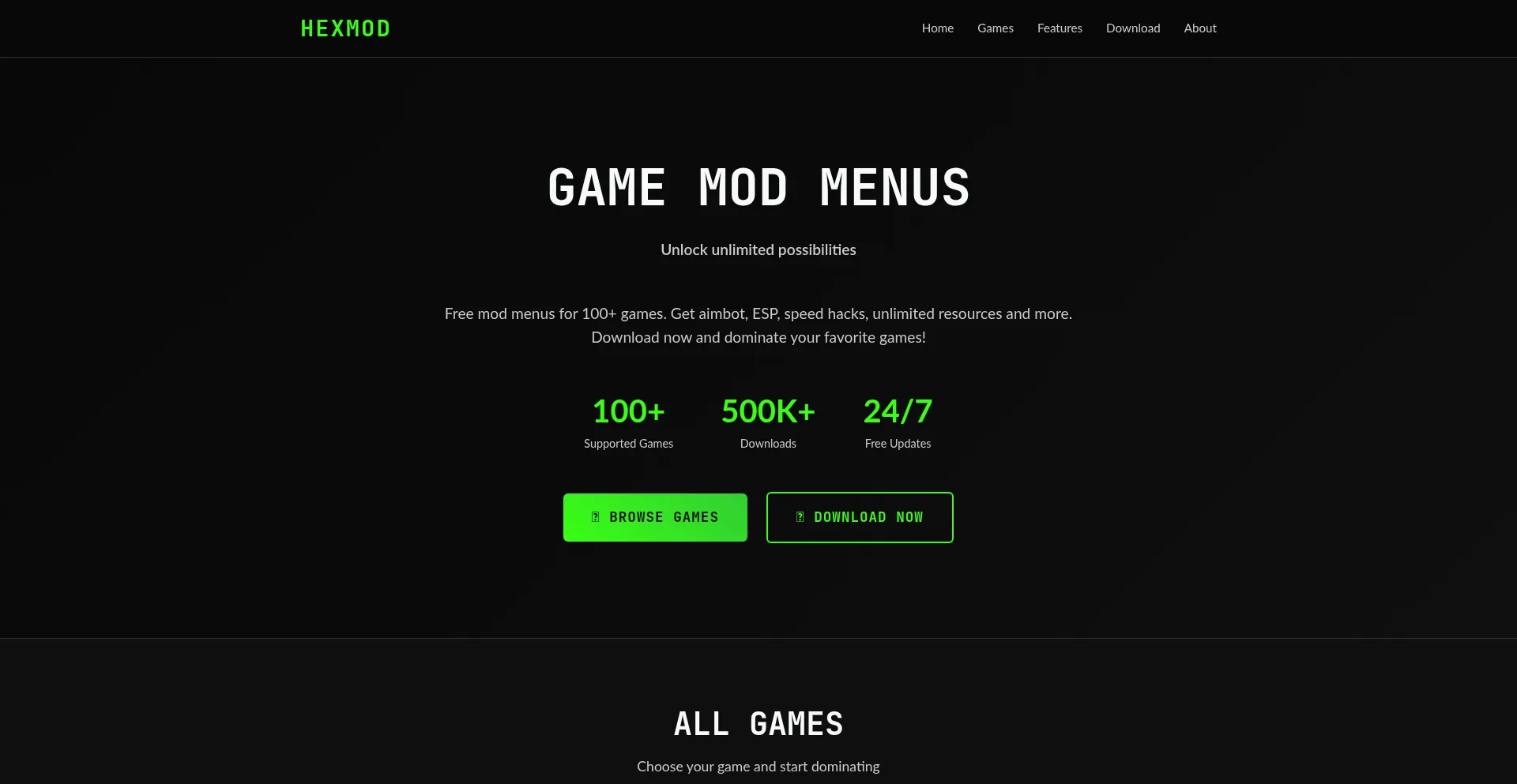 Download free mod menus for your favorite games. HEXMod offers aimbot, ESP, speed hacks and more for 100+ games.