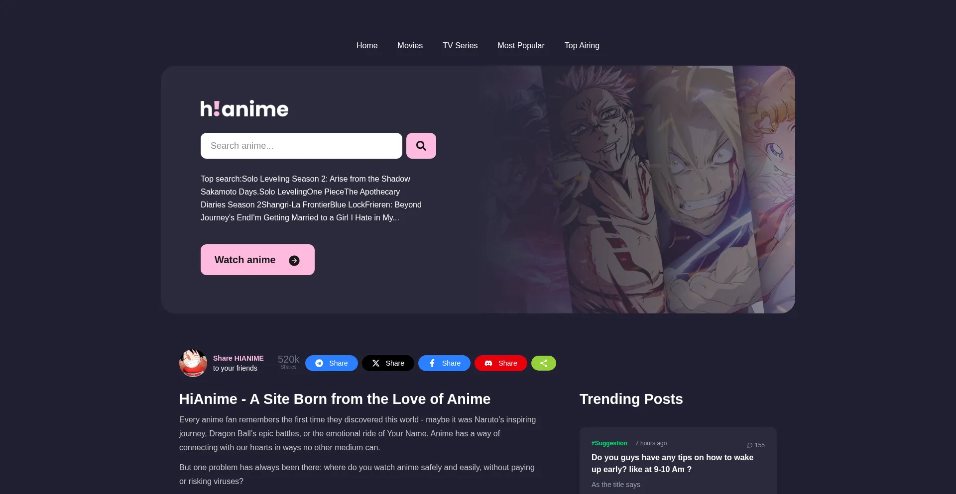 HiAnime to watch all anime online in HD quality with DUB and SUB, and download TV series and movies for Free on Hianime No Ads, 100% FREE GUARANTEED!!!