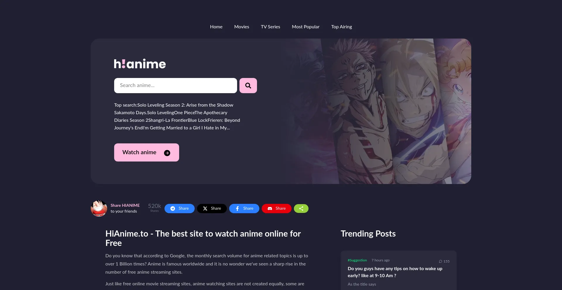 HiAnime to watch all anime online in HD quality with DUB and SUB, and download TV series and movies for Free on Hianime No Ads, 100% FREE GUARANTEED!!!