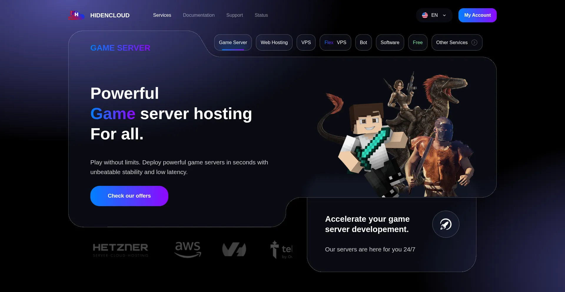Join HidenCloud today for robust, secure, and scalable hosting solutions. Perfect for game servers, web hosting, VPS, and bot hosting with 99.9% uptime guarantee.