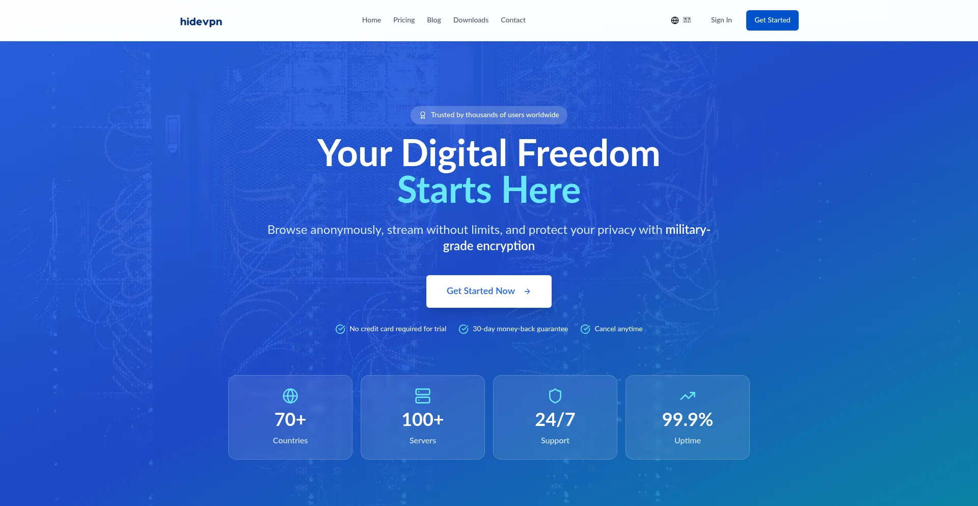 Secure your online presence with HideVPN. Experience lightning-fast speeds, global server access, and robust privacy protection. Browse anonymously, stream without limits, and s...