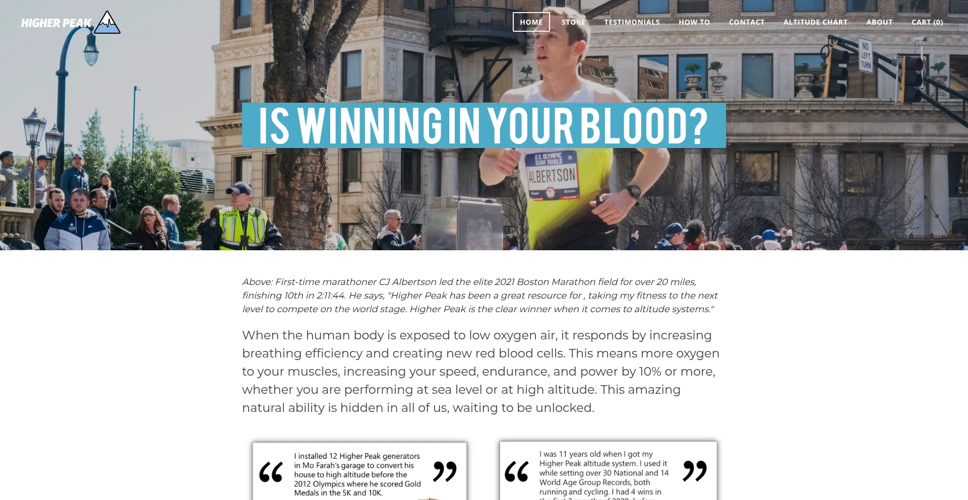 Higher Peak, the top-selling personal athletic altitude training system, builds speed and endurance with low-oxygen training masks and altitude tents.