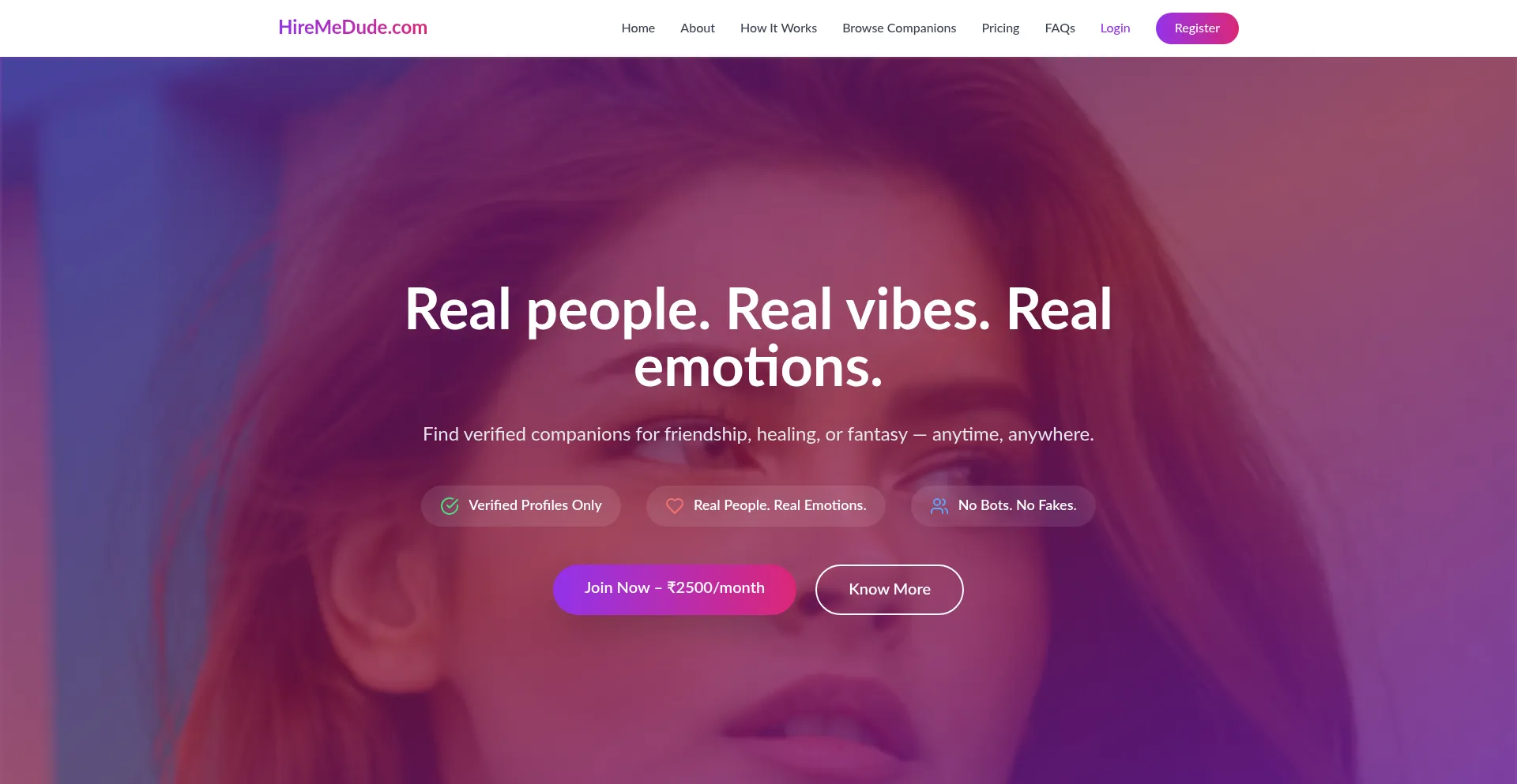 Find verified companions for friendship, healing, or fantasy — anytime, anywhere.