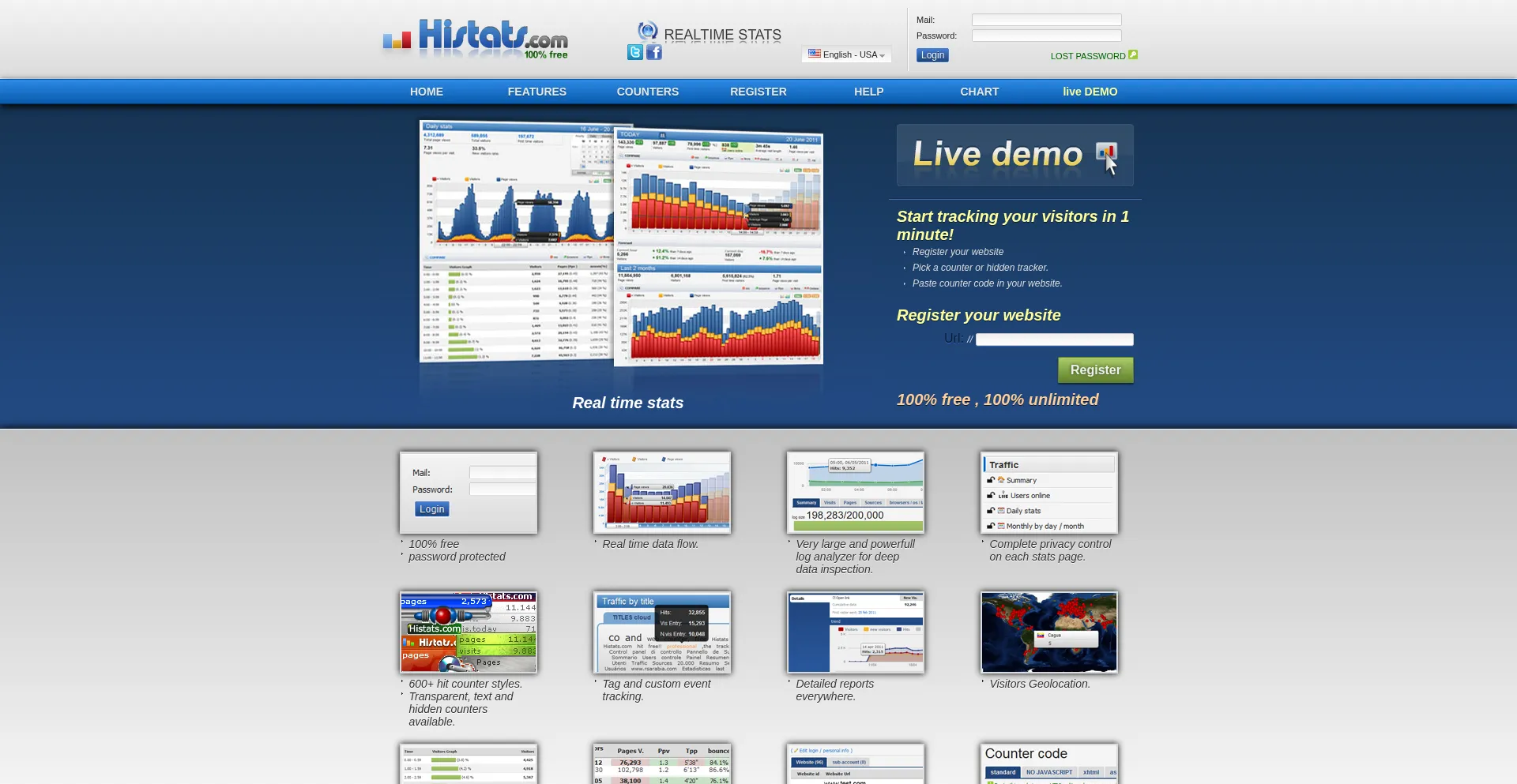 Histats.com, free web stats and stat counter, hit counter, free web tracker and tracking tools, stats counter