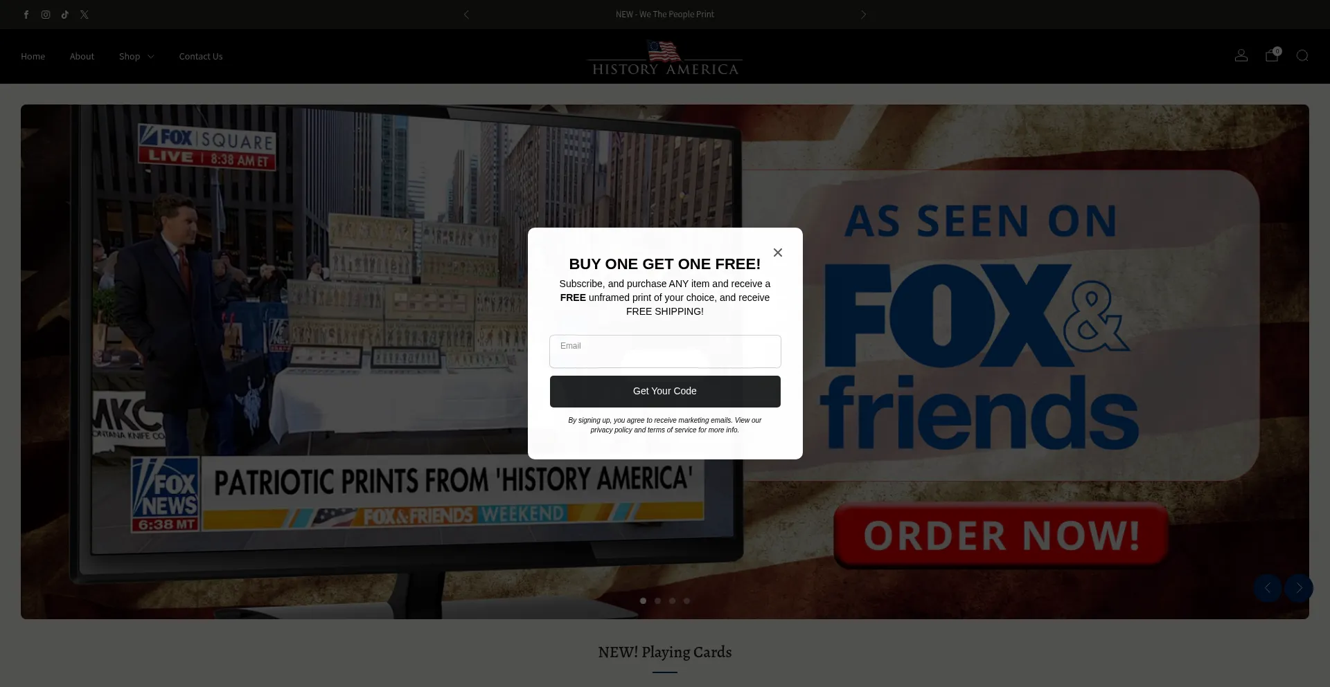 网站上存在社交媒体链接表明 historyamerica.us 在社交媒体上维护官方账户,这是可信度和参与度的积极信号。