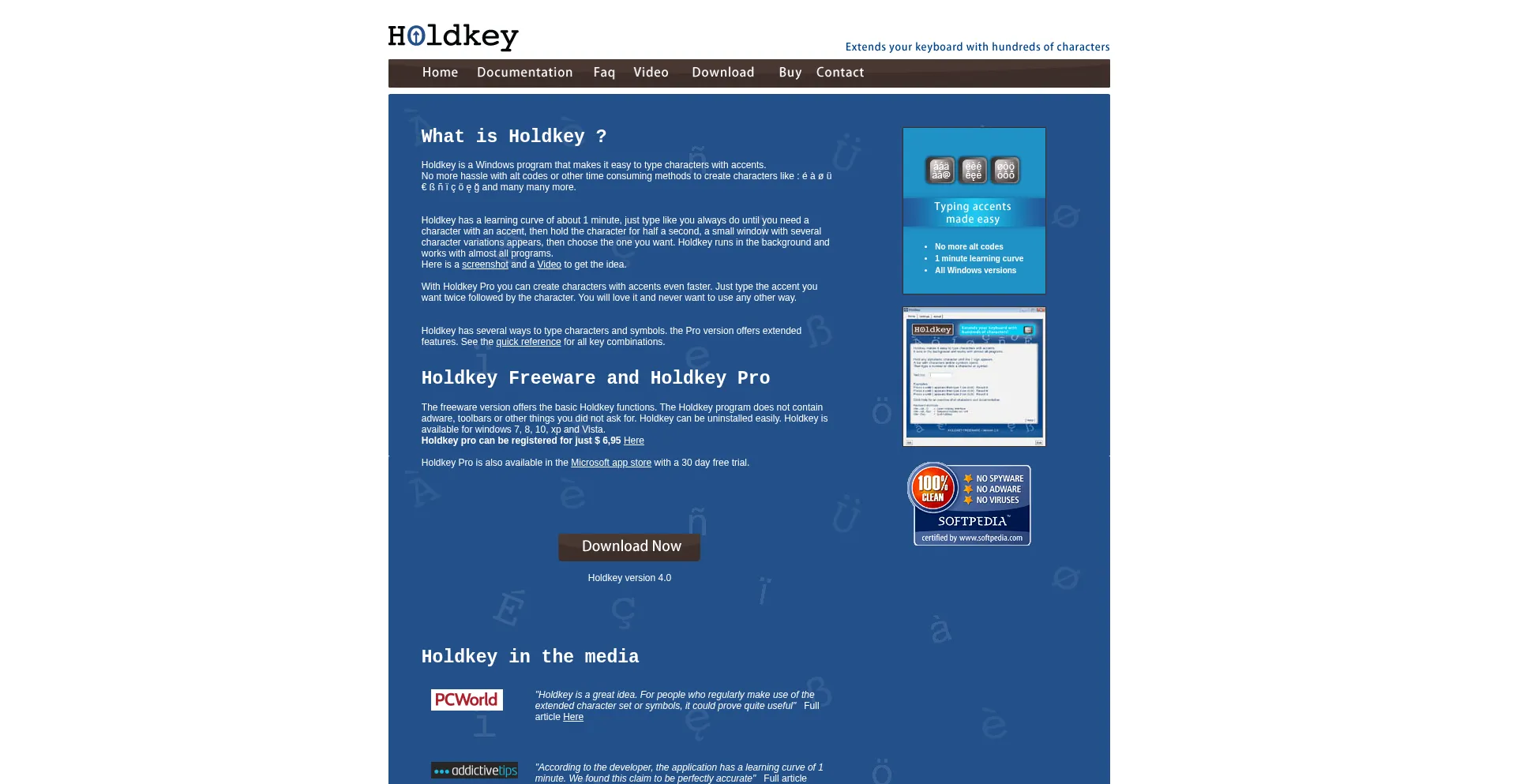 Holdkey is a Windows program that makes it easy to type characters with accents.