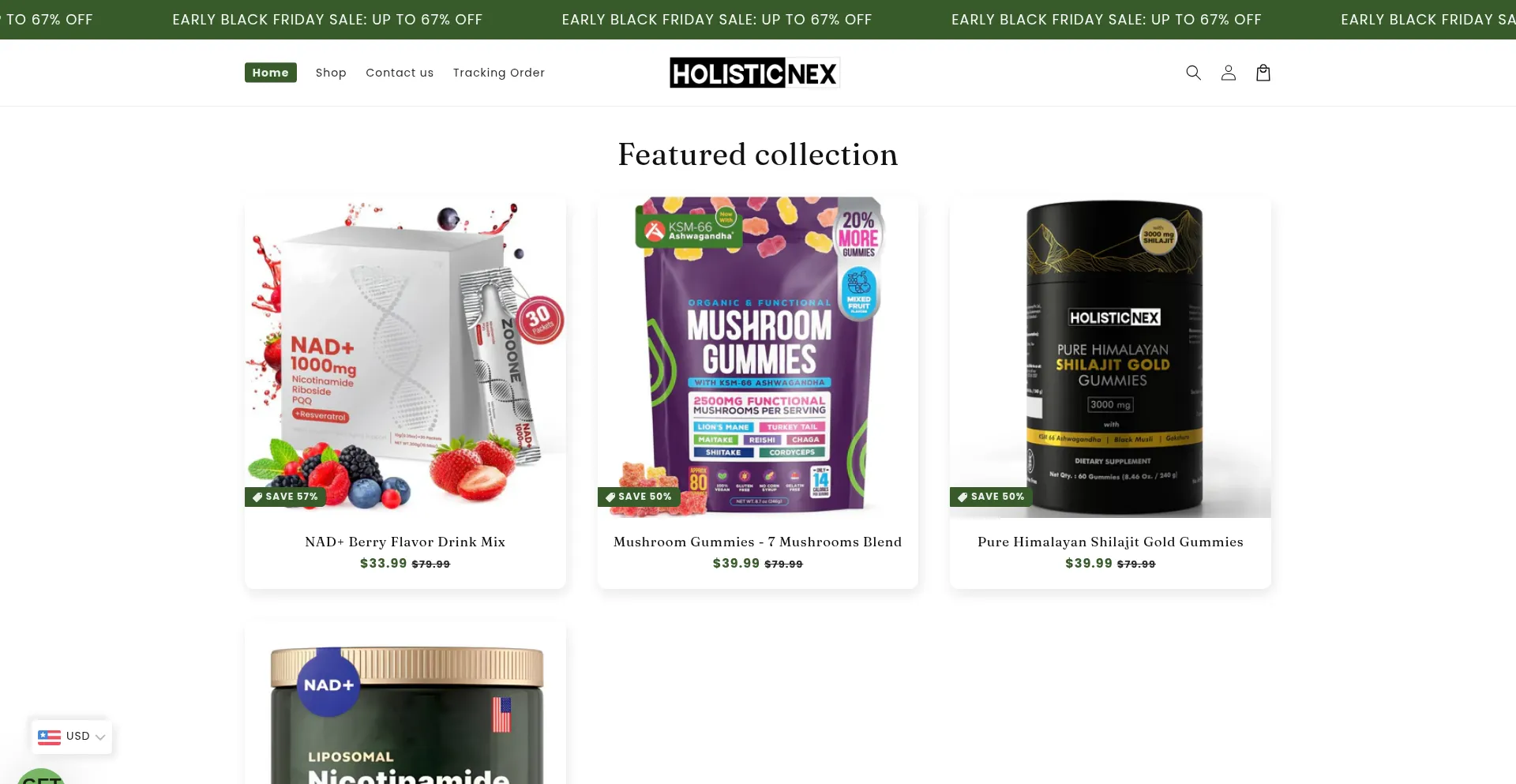 该网站利用流行产品名称和品牌来吸引流量并产生用户兴趣。这些产品可能通过促销活动或折扣策略提供,旨在增加 holisticnex.com 的访客参与度和转化率。