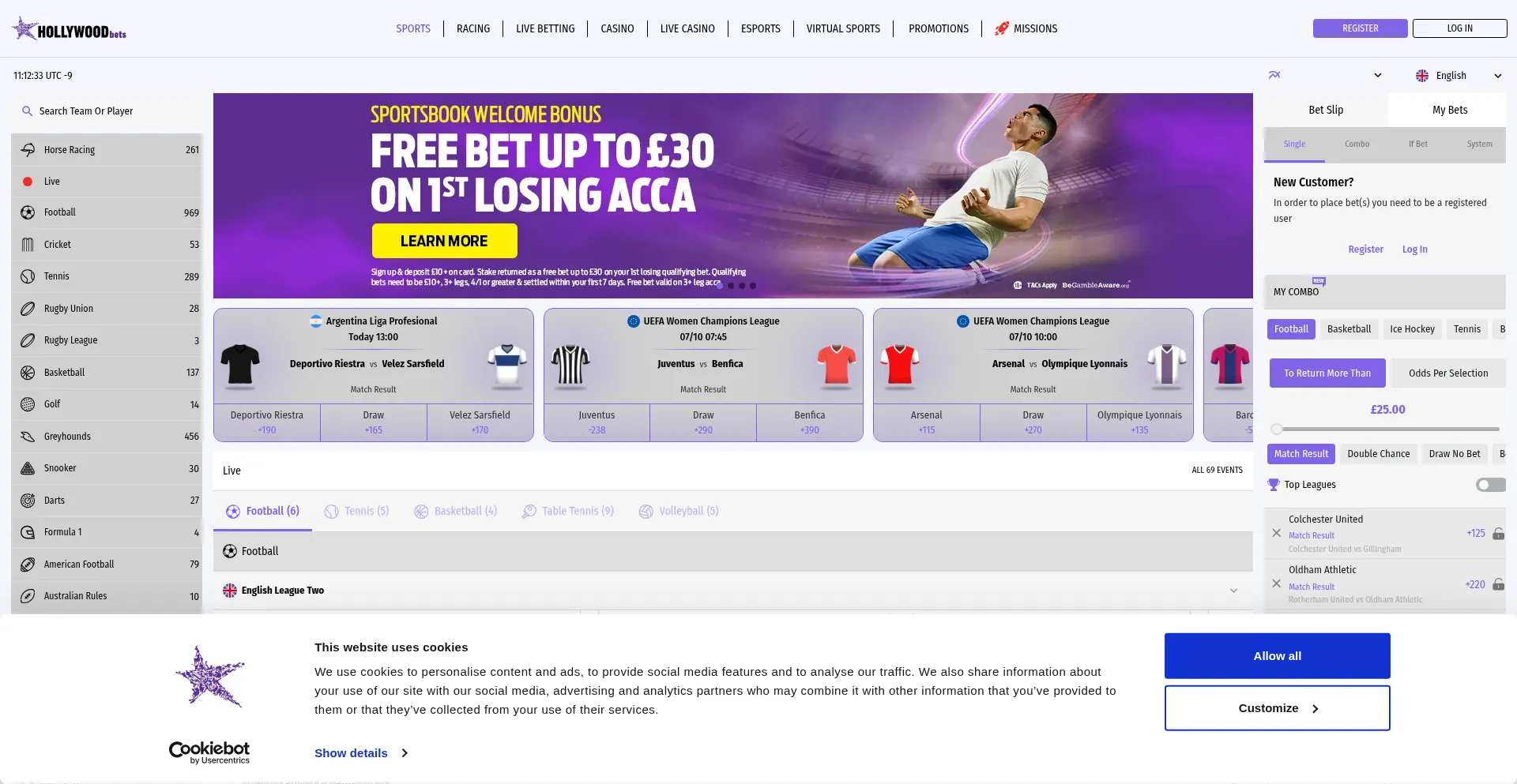 Hollywoodbets UK Sportsbook offers a wide number of markets on football, horse racing, tennis, golf, NBA, NFL and more. Boosted Odds are also available. 18+ only