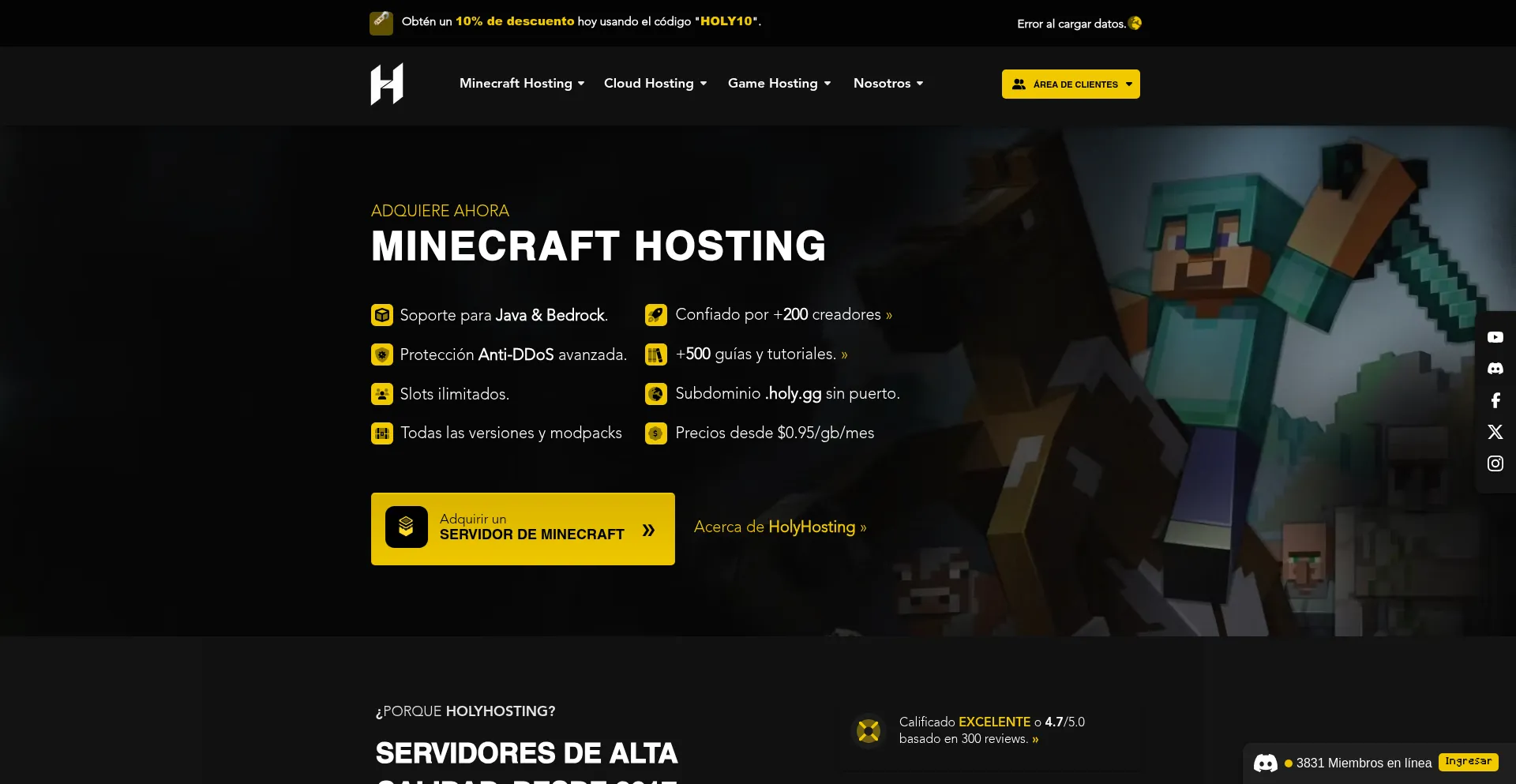 En HolyHosting ofrecemos el mejor servicio de Minecraft Hosting de alta calidad. Soporte disponible 24/7/365. Empieza hoy mismo por menos de $1