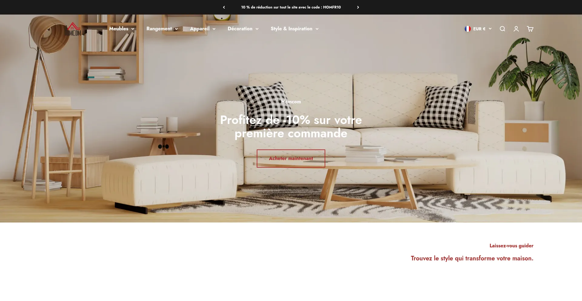 分析表明 homcom.fr 作为电子商务平台运营,促进商品或服务的在线交易。该网站实现了购物车功能、支付处理系统和产品目录功能,这些是商业零售运营的典型特征。