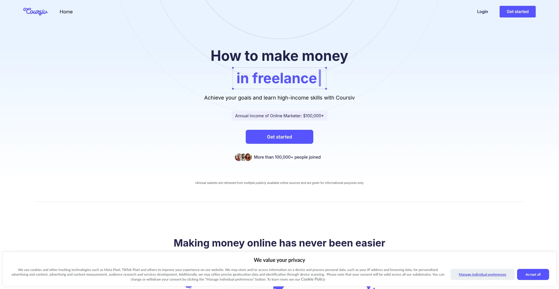 Coursiv is the best place to learn AI tools, Online Professions and other digital skills to make money online. More than 100,000 people worldwide have learned high-income skills...