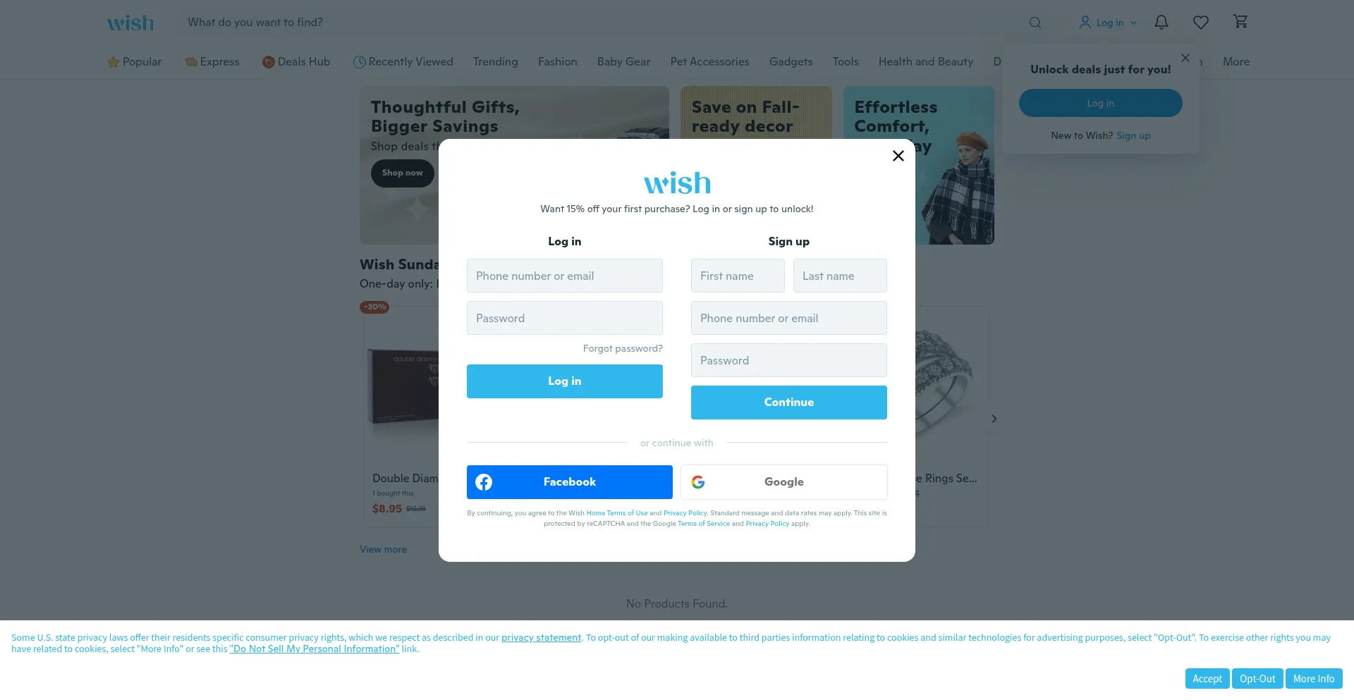 home.wish.com 提供 Android 设备移动应用程序,表明平台存在已扩展到网络服务之外。