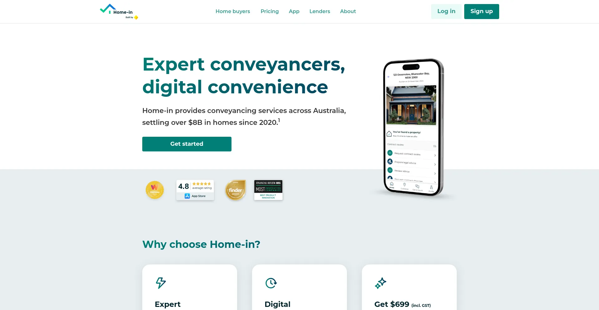 home-in.com.au 拥有可用的 iOS 移动应用程序,表明为 Apple 设备用户提供跨平台可访问性。