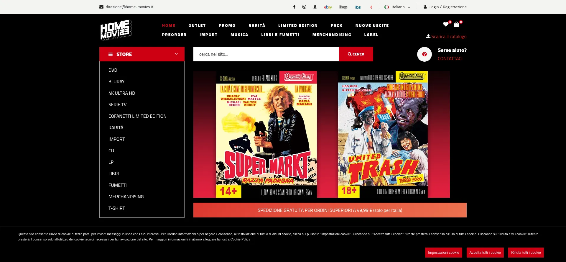 Negozio online di DVD, BluRay, Vinili, VHS, AudioCD, Libri, Fumetti, Manga, Movie gadget, Film XXX e distributore indipendente di film.