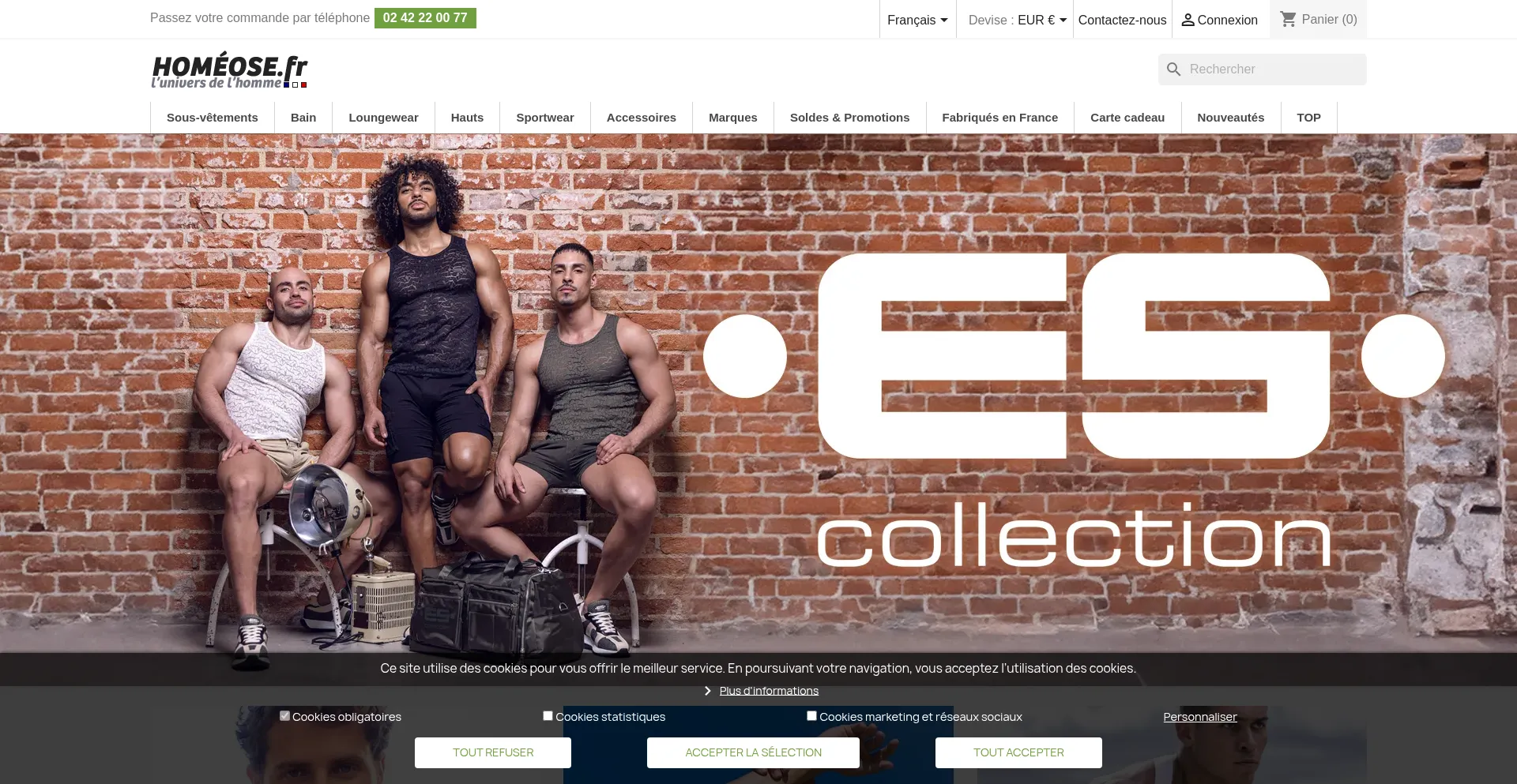 Découvrez notre collection de lingerie homme, sous-vêtement homme, caleçons, boxers homme, slips, maillots de bain homme string, pyjama homme