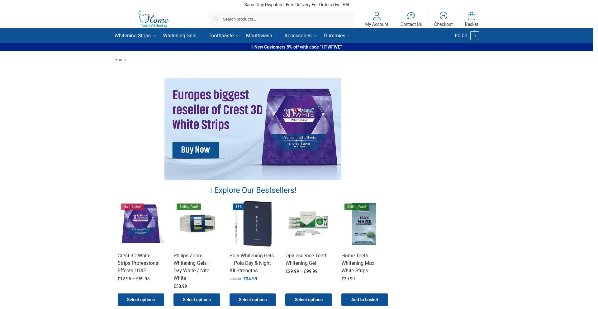 UK's trusted supplier Crest 3D White Strips, Philips Zoom, POLA and Opalescence whitening products. Professional results at home. UK delivery.