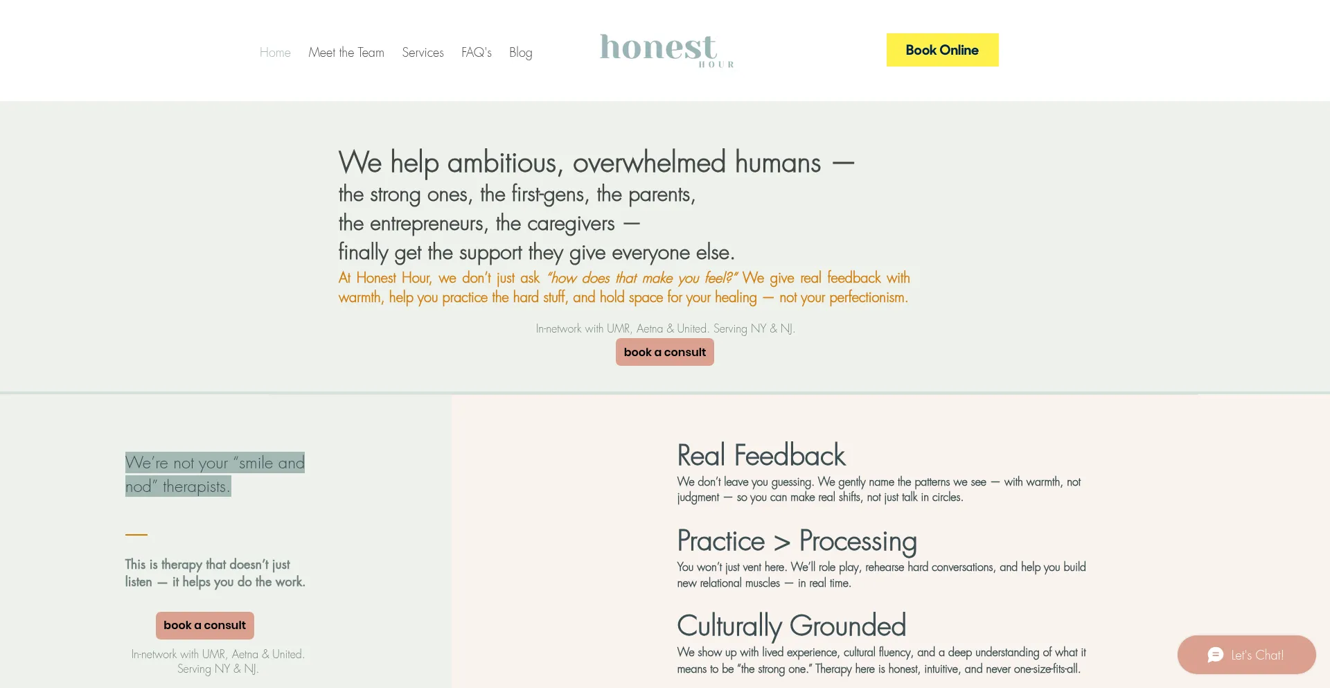 In-network UMR, Aetna, and United therapists in NY & NJ. Honest Hour supports caregivers and ambitious, overwhelmed humans. Book your free consult today.