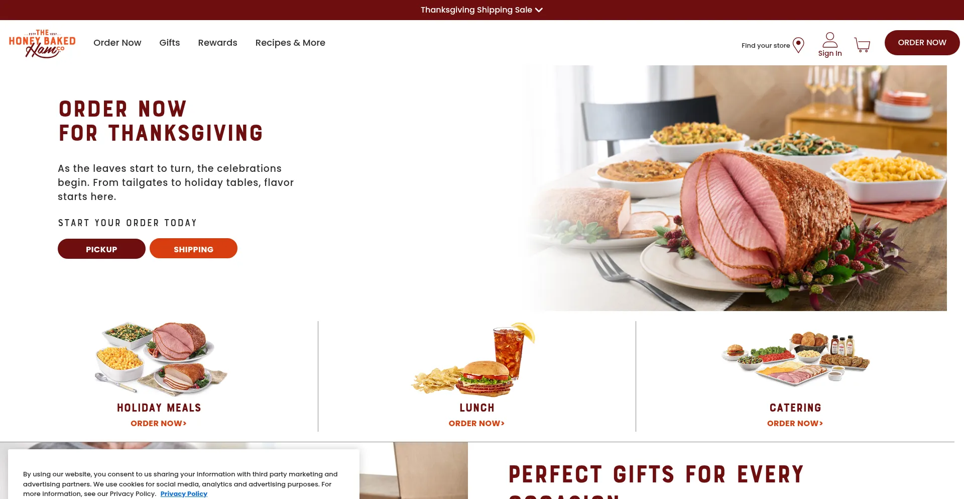 Order your Thanksgiving, Friendsgiving, or holiday feast now from HoneyBaked. Treat your family and friends to our premium glazed spiral hams, tender turkey breasts, convenient ...