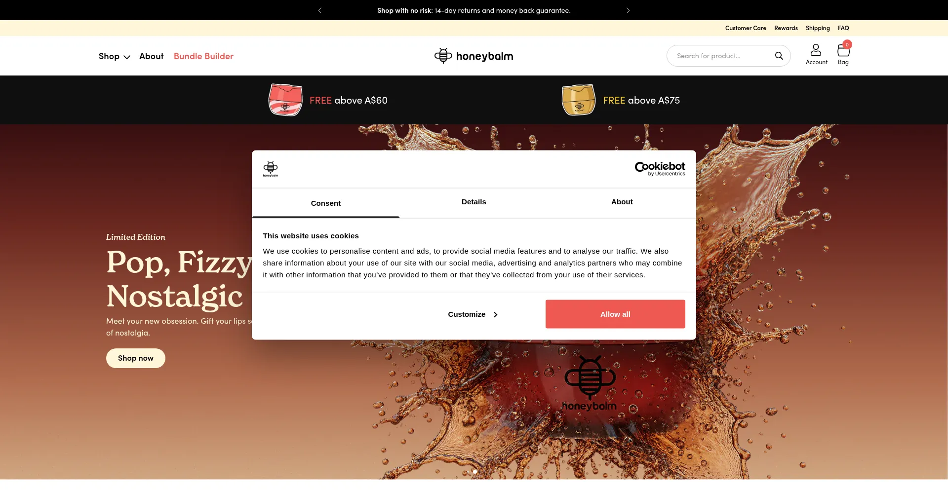 该网站实现符合GDPR或CCPA等隐私法规的cookie同意机制。这表明 honeybalm.au 遵守数据保护标准并为用户提供对个人数据收集实践的控制。