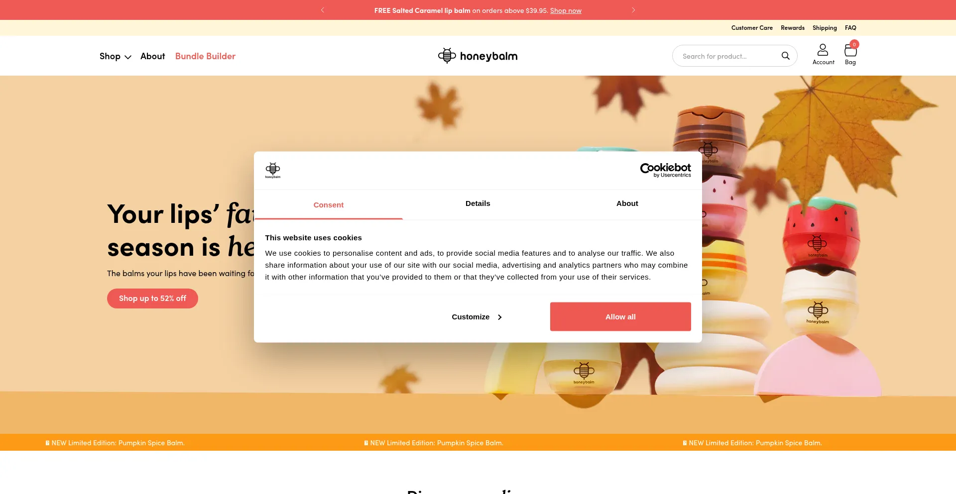 该网站实现符合GDPR或CCPA等隐私法规的cookie同意机制。这表明 honeybalm.com 遵守数据保护标准并为用户提供对个人数据收集实践的控制。