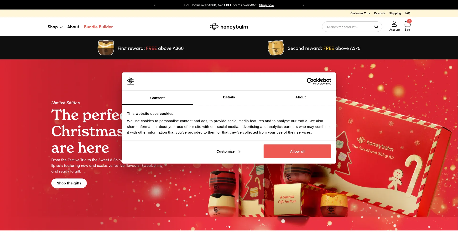 该网站实现符合GDPR或CCPA等隐私法规的cookie同意机制。这表明 honeybalmaustralia.com 遵守数据保护标准并为用户提供对个人数据收集实践的控制。