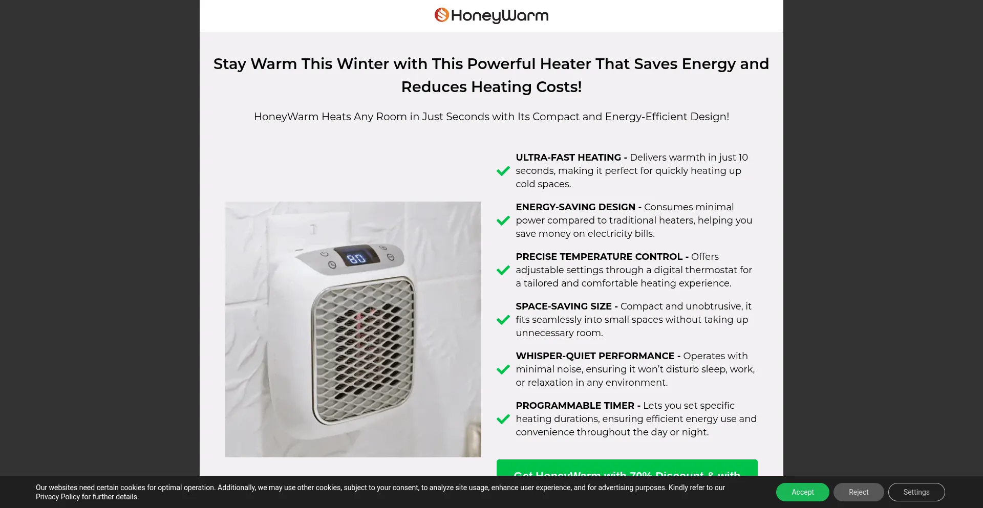 该网站实现符合GDPR或CCPA等隐私法规的cookie同意机制。这表明 honeywarm.store 遵守数据保护标准并为用户提供对个人数据收集实践的控制。