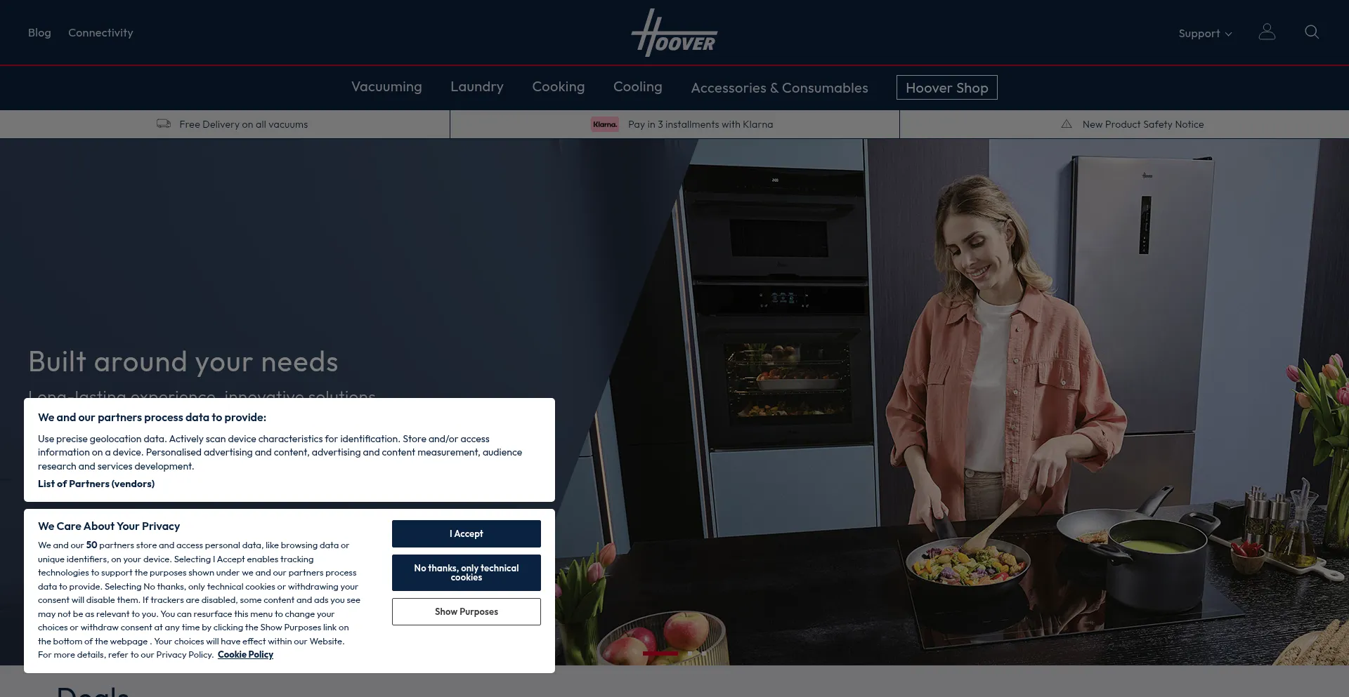 该网站实现符合GDPR或CCPA等隐私法规的cookie同意机制。这表明 hoover.co.uk 遵守数据保护标准并为用户提供对个人数据收集实践的控制。