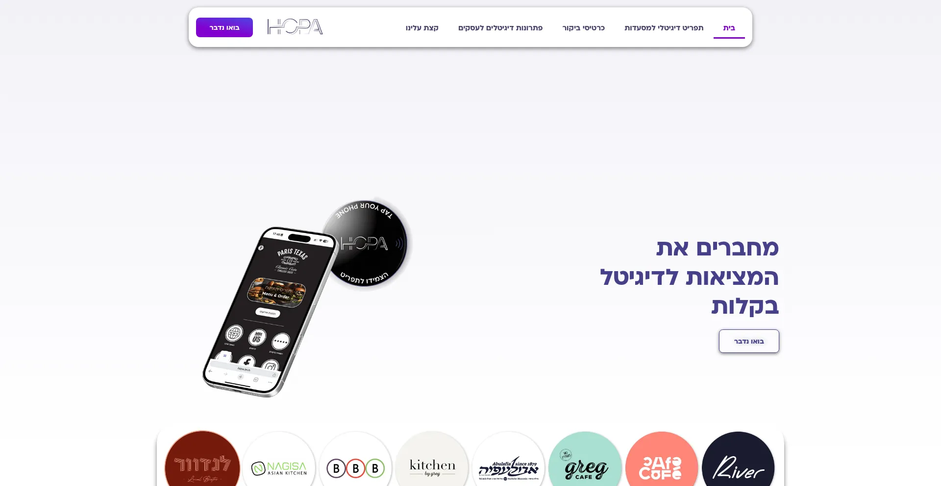 הופה דיגיטל | תפריטים חכמים | פתרונות תכנה ושיווק חדשניים ועוד