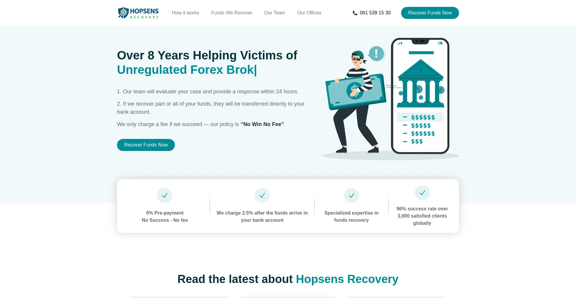 Official website of Hopsens Recovery. We help victims recover funds from crypto scams, CFD brokers, and other online scams. No Win No Fee.Contact us now.