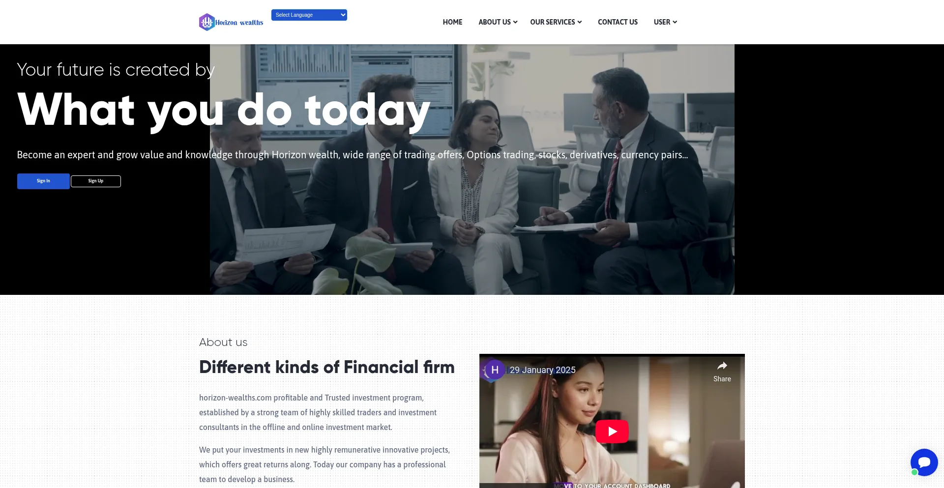 网站上存在社交媒体链接表明 horizon-wealths.com 在社交媒体上维护官方账户,这是可信度和参与度的积极信号。