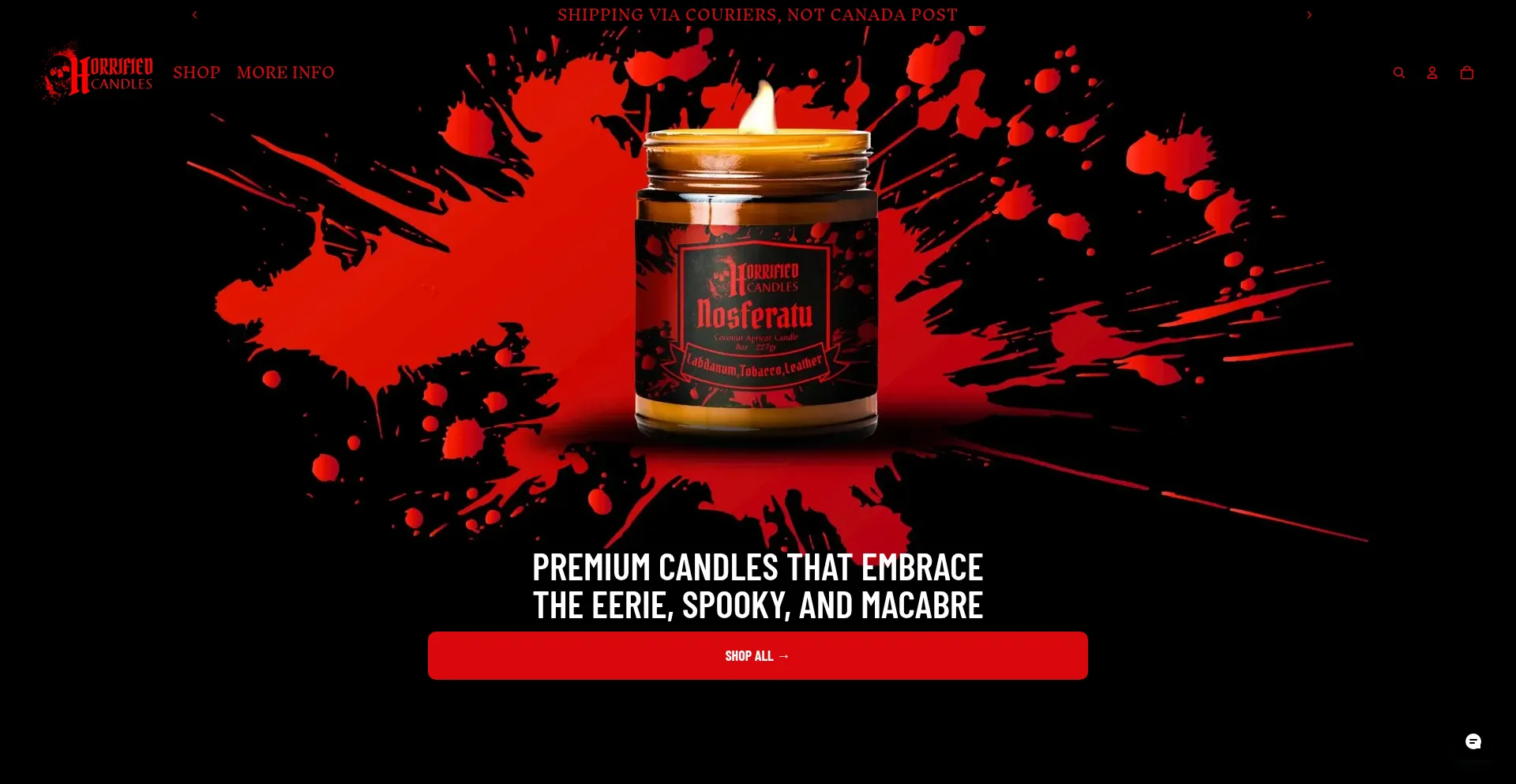 Horrified Candles offers handcrafted, Canadian-made candles inspired by the eerie, spooky, and macabre. Haunting scents. Terrifying stories. Darkness you can light.