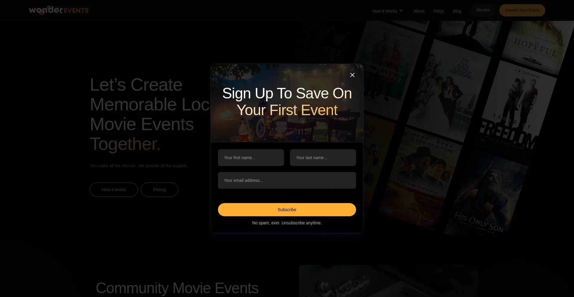 Host a private movie event anywhere with Wonder Events! Get instant access to new release films, ticketing, and promotional tools for just $129. Easy setup, no cinema required. ...