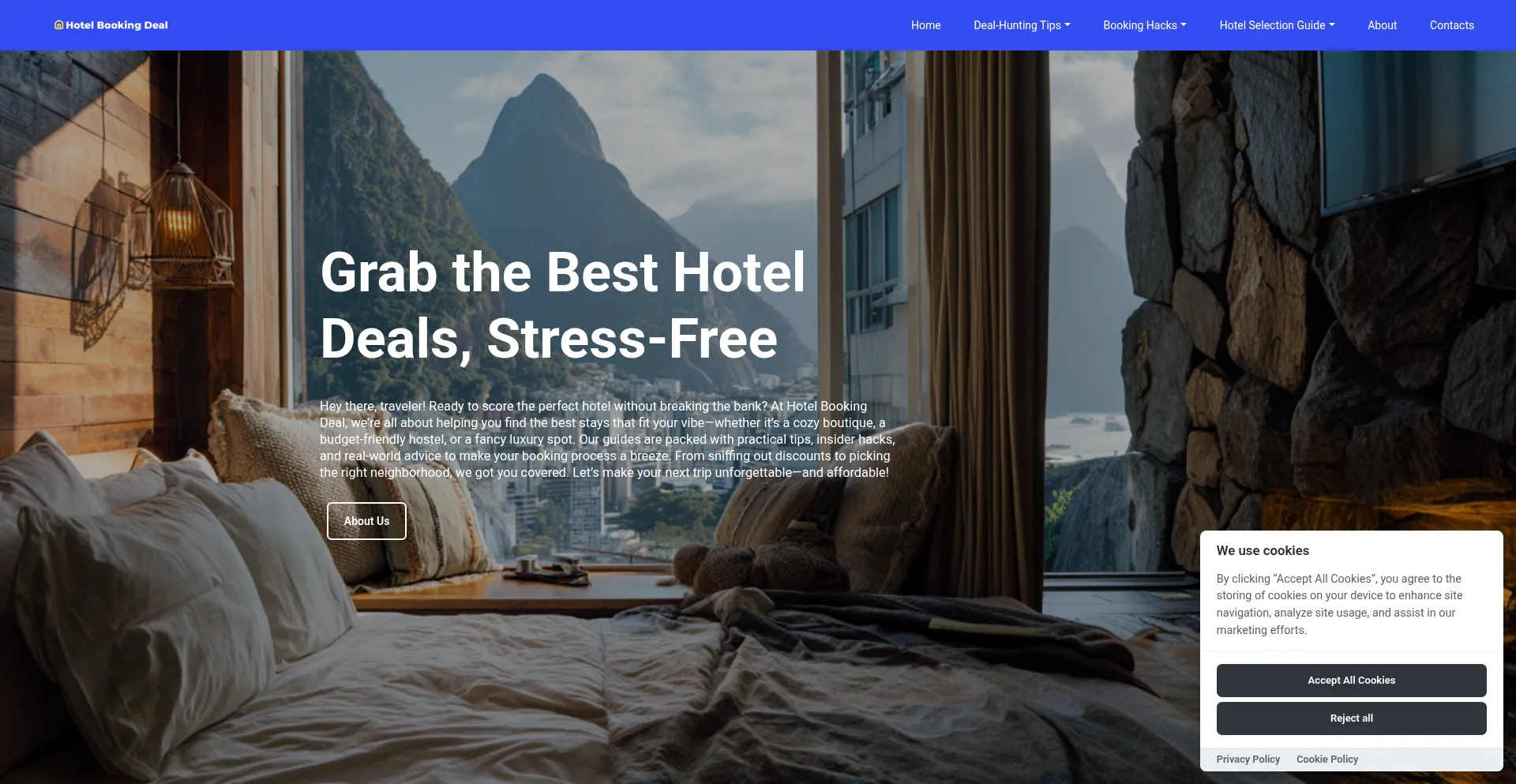 该网站实现符合GDPR或CCPA等隐私法规的cookie同意机制。这表明 hotelbookingdeal.com 遵守数据保护标准并为用户提供对个人数据收集实践的控制。