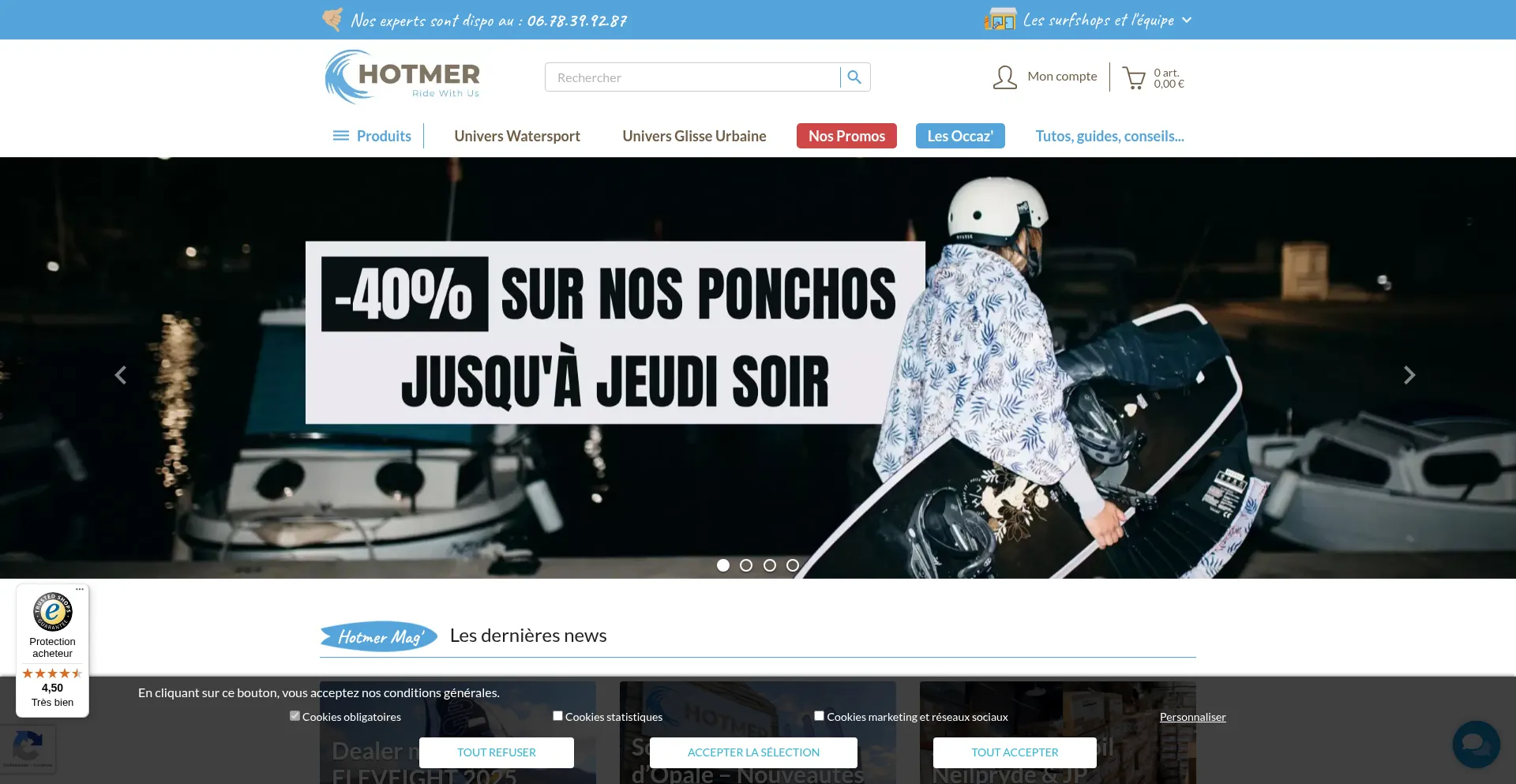 Découvrez Hotmer, la boutique en ligne spécialisée dans la glisse et le nautisme : trottinettes freestyle, surf, paddle, équipements et accessoires. Livraison rapide, consei...