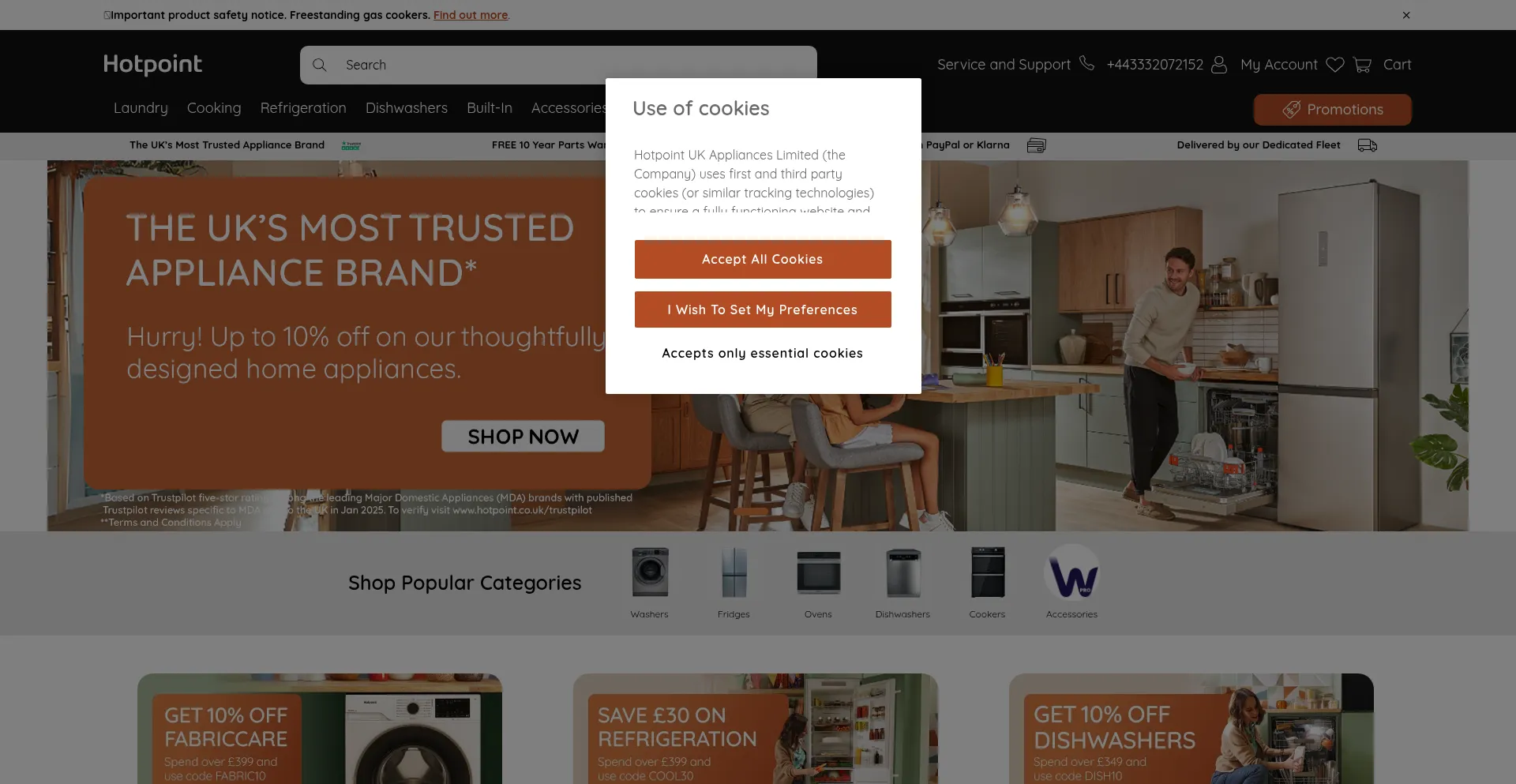 该网站实现符合GDPR或CCPA等隐私法规的cookie同意机制。这表明 hotpoint.co.uk 遵守数据保护标准并为用户提供对个人数据收集实践的控制。