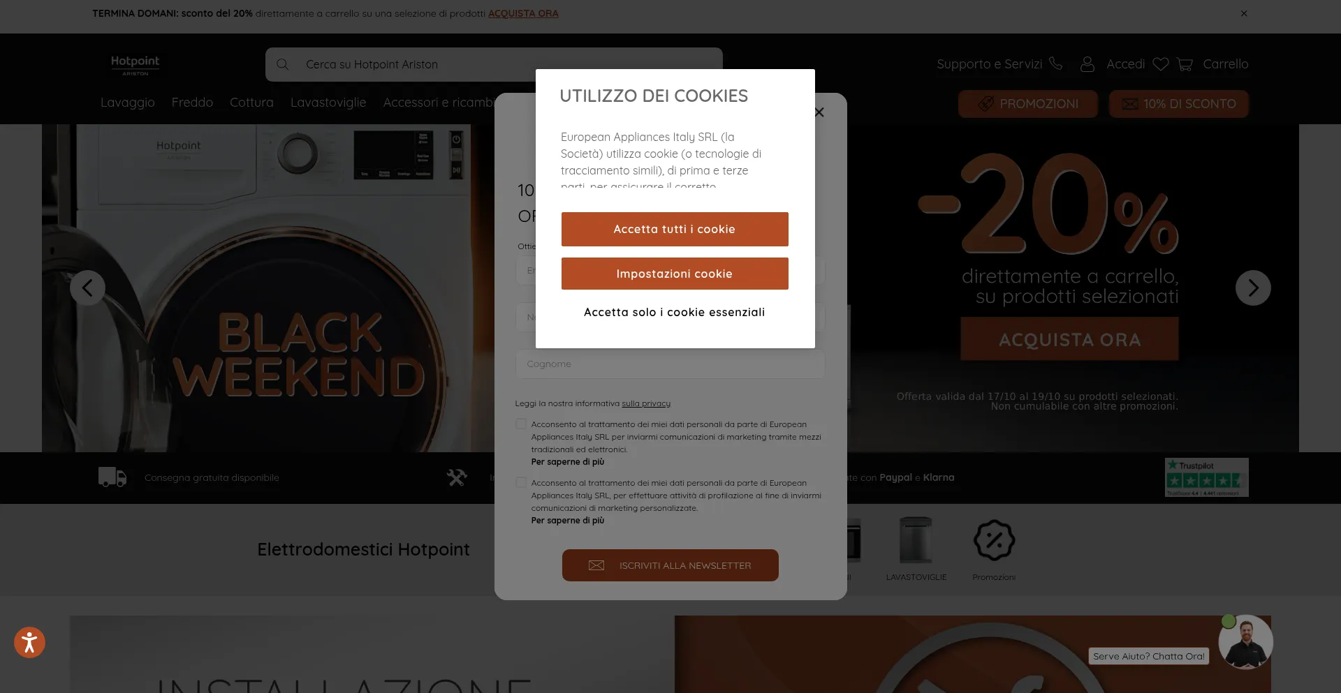 该网站实现数据收集表单,请求个人信息,包括姓名、电子邮件地址、电话号码或其他敏感详细信息。用户应验证 hotpoint.it 的合法性并在提交个人数据前查看隐私政策。