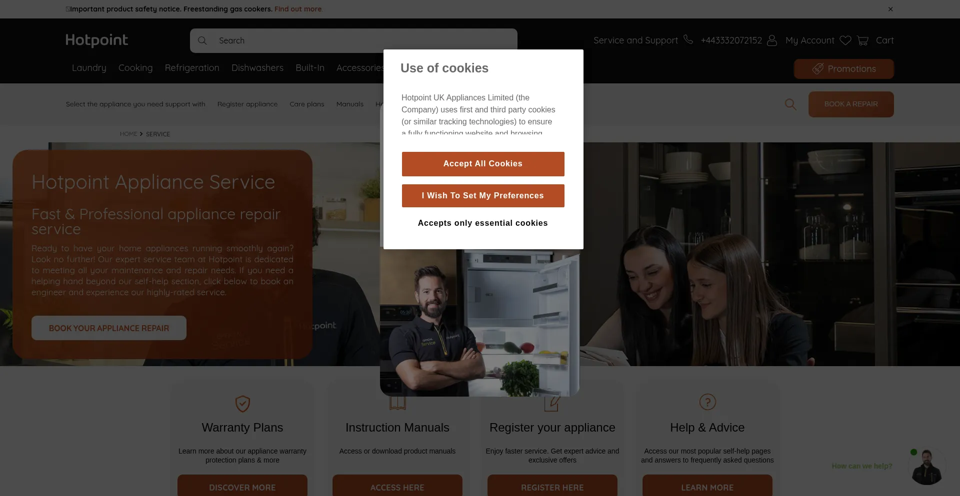 Get professional Hotpoint customer service & repair for all home appliances. For repairs, manuals, help, and advice, chat online or call us on 0344 822 4224