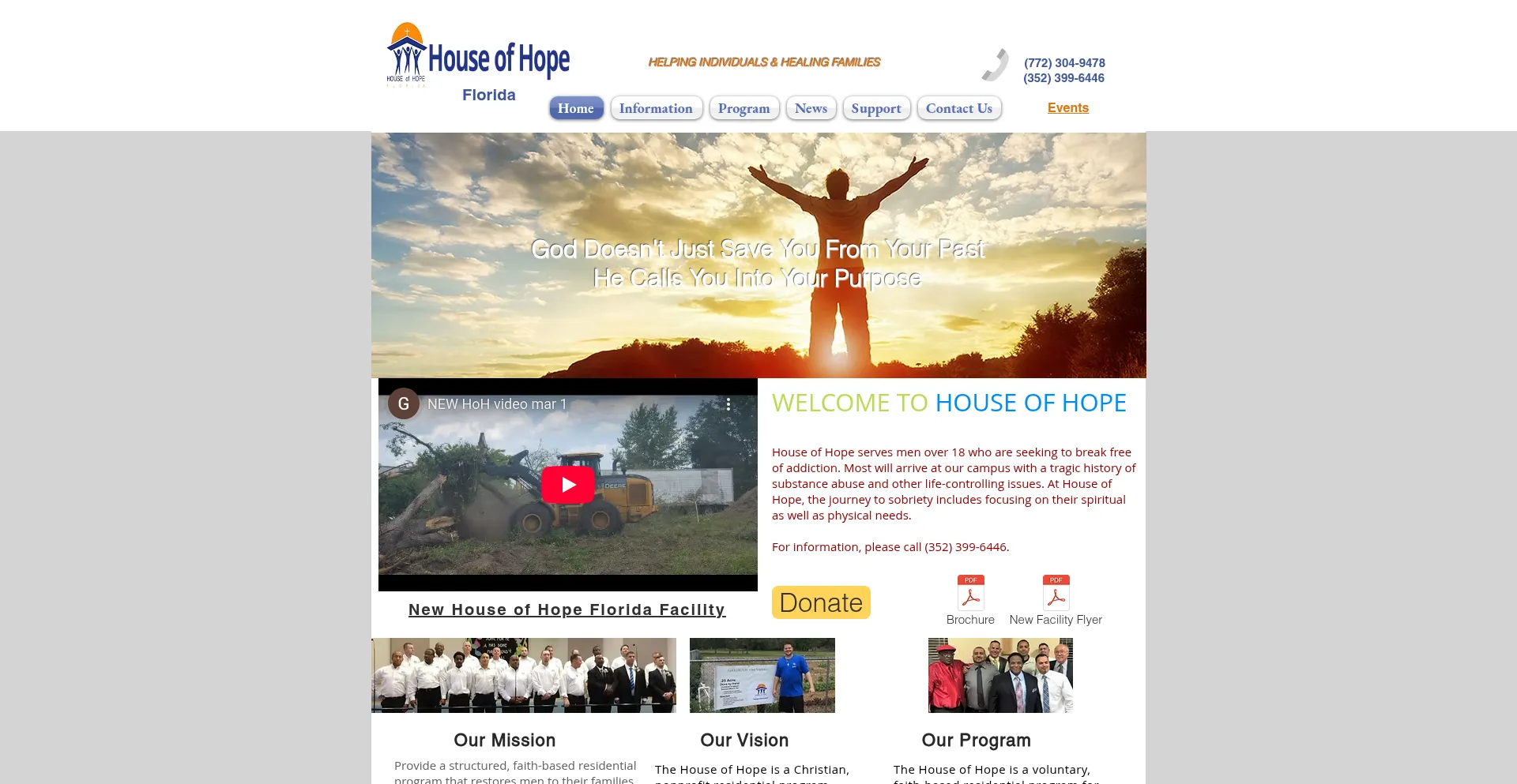 该网站实现数据收集表单,请求个人信息,包括姓名、电子邮件地址、电话号码或其他敏感详细信息。用户应验证 houseofhopefl.org 的合法性并在提交个人数据前查看隐私政策。