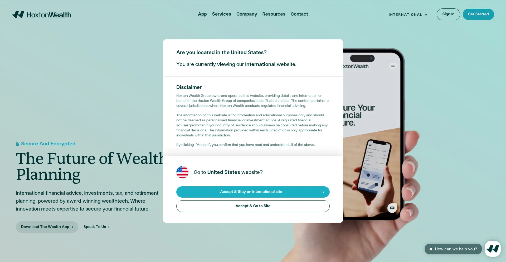 该网站实现数据收集表单,请求个人信息,包括姓名、电子邮件地址、电话号码或其他敏感详细信息。用户应验证 hoxtonwealth.com 的合法性并在提交个人数据前查看隐私政策。