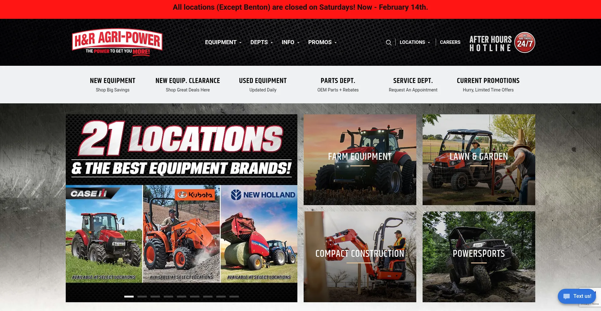 Case IH, New Holland, Kubota tractor, mowers, construction, & farm dealer | H&R Agri-Power | 20 locations: IN, IL, KY, TN, MS, & AL | Parts, Service, & Financing