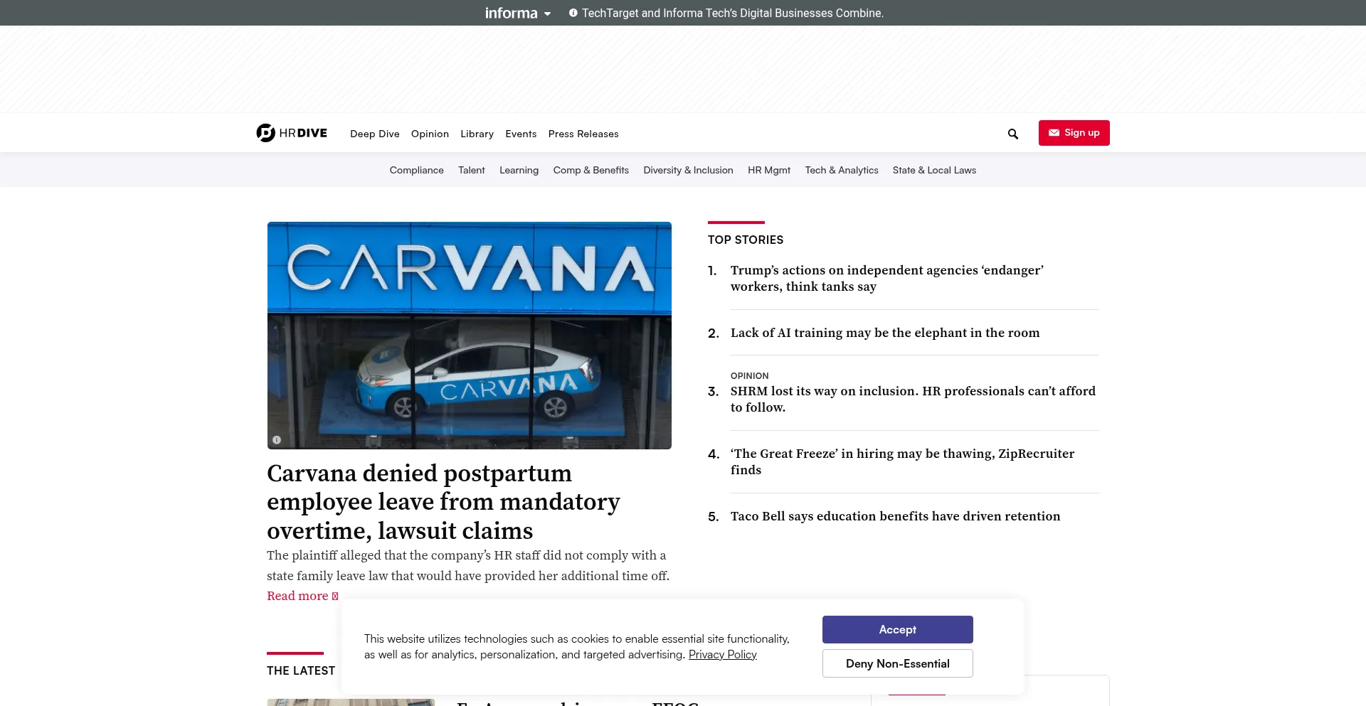 HR Dive provides news and analysis for human resource executives. We cover topics like recruiting, HR management, employee learning & development, compensation & benefit...